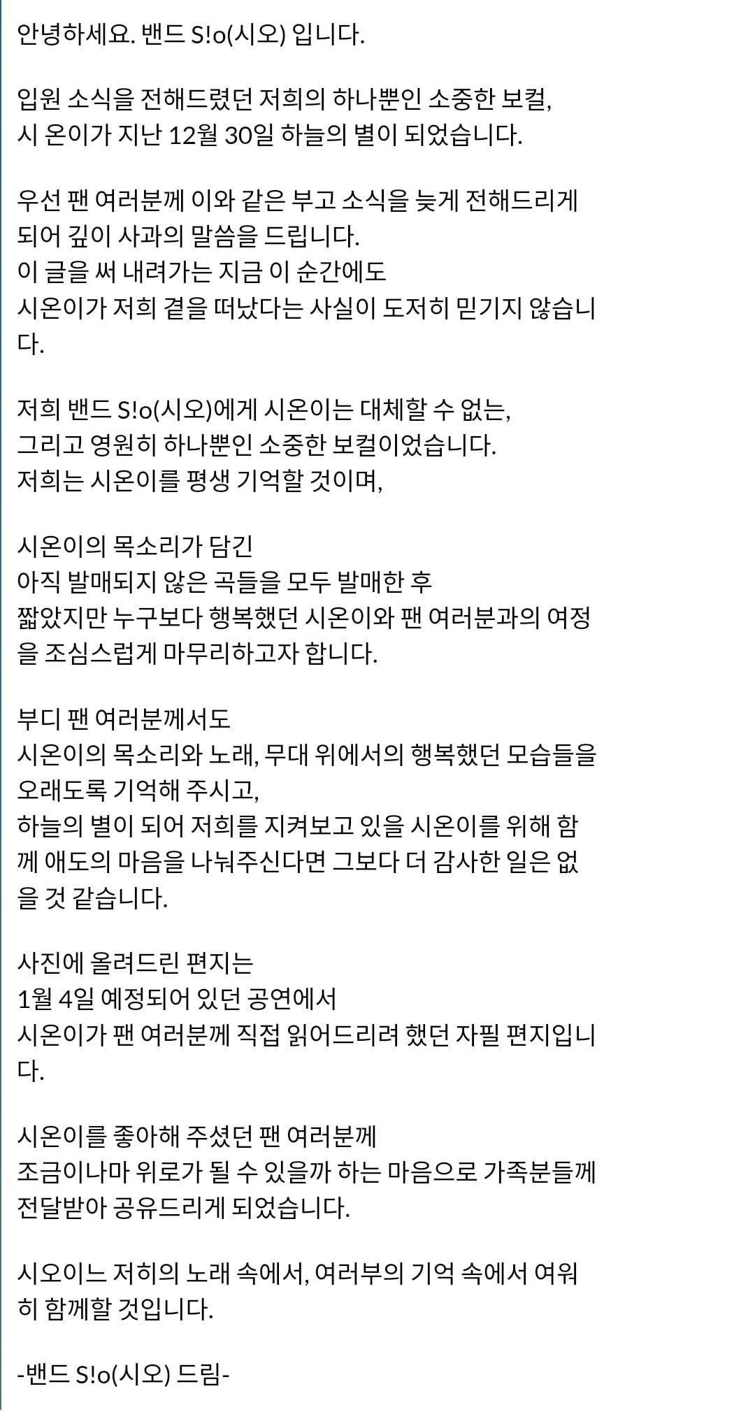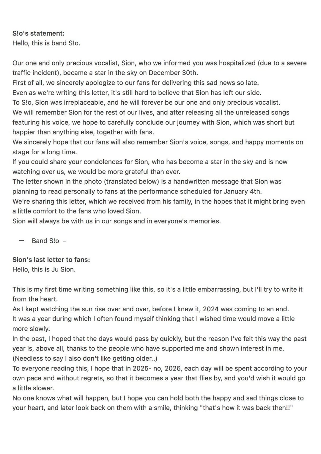 توفي مغني S!o Ju Sion في 30 ديسمبر بعد حادث مروري خطير