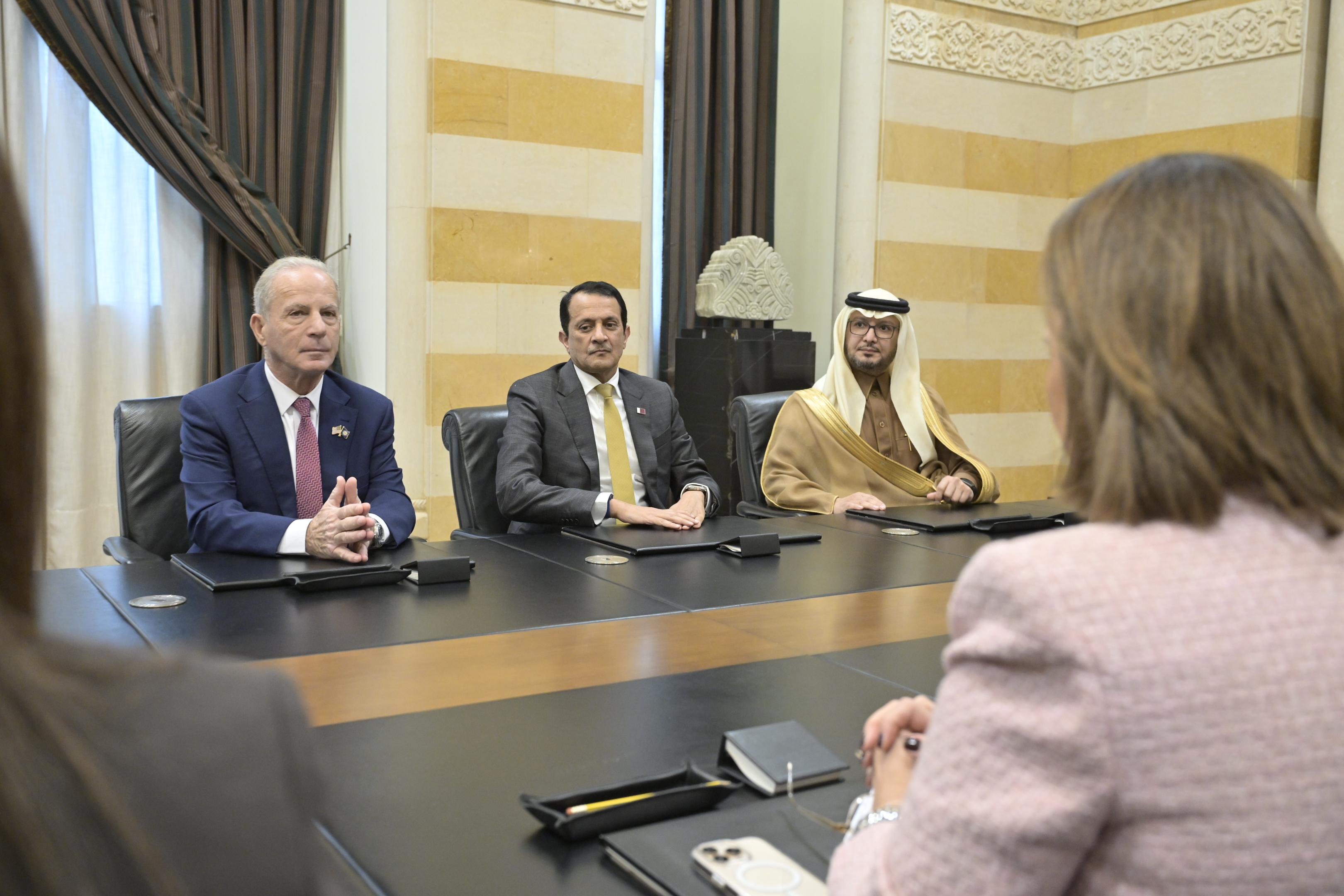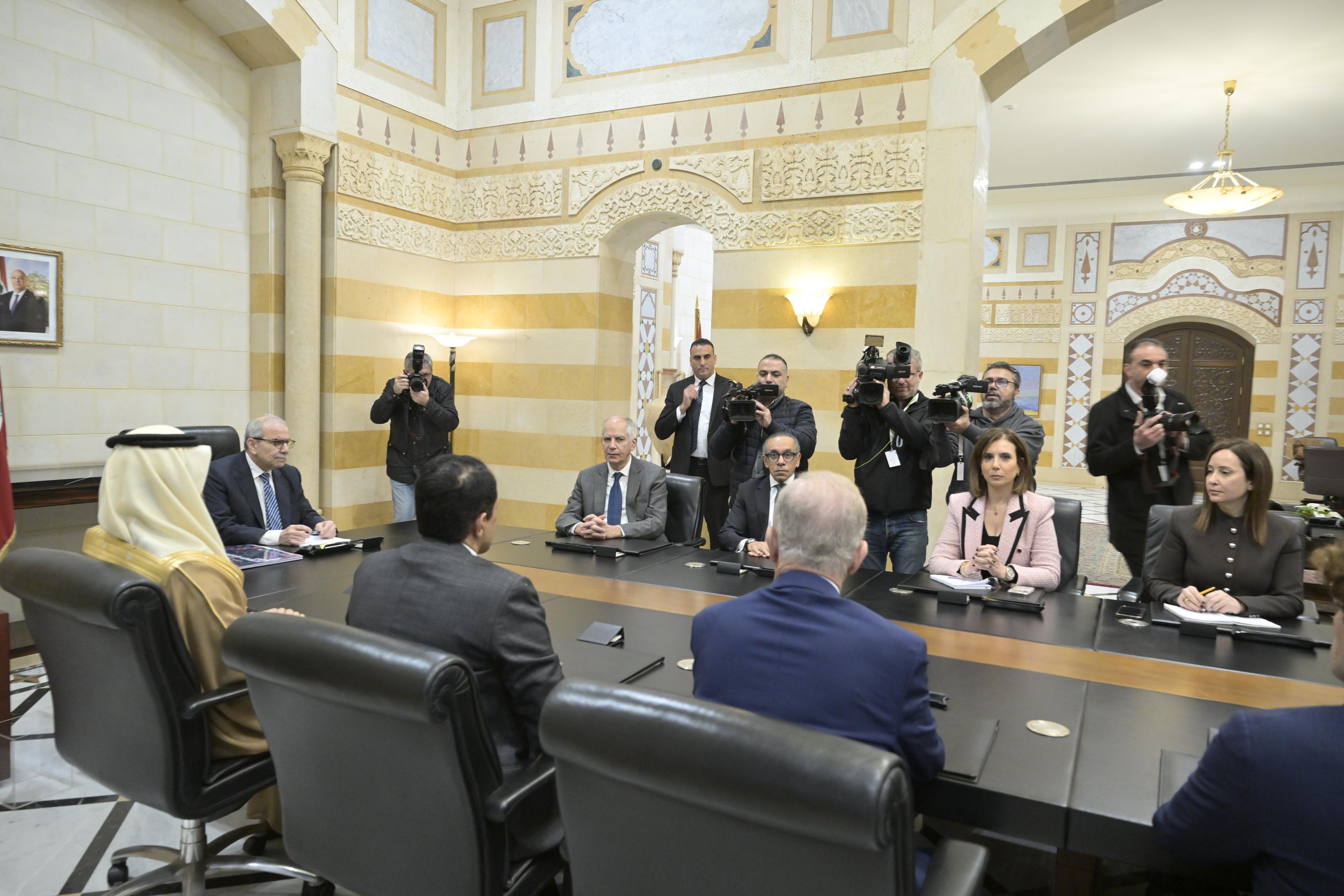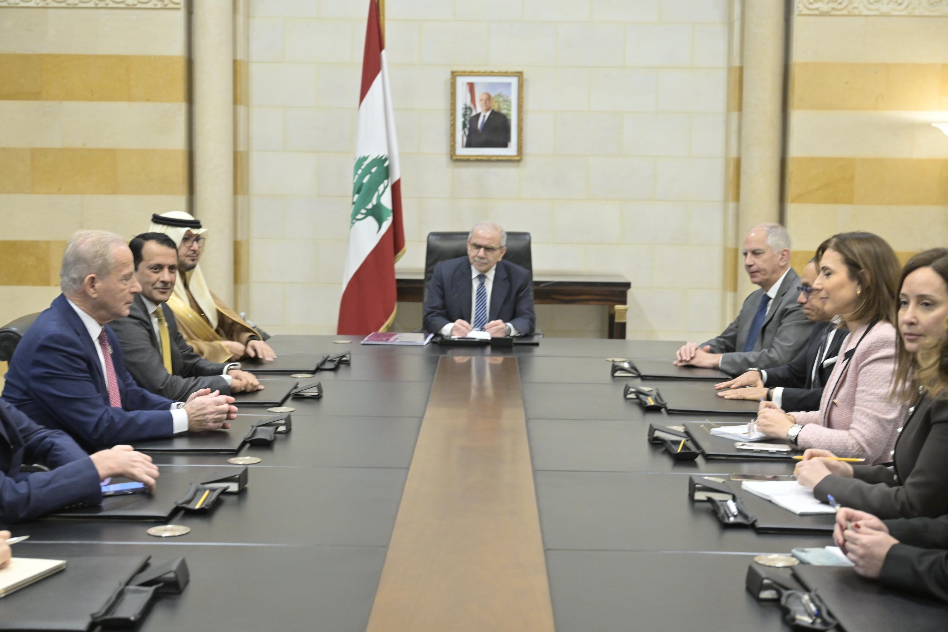 عقد رئيس الحكومة نواف سلام لقاءً مع سفراء المجموعة الخماسية التي تضمّ الولايات المتحدة وفرنسا والمملكة العربية السعودية ومصر وقطر، لبحث عدد من القضايا ذات الأولوية، وفي مقدّمها دعم الحكومة، ومشروع معالجة الفجوة المالية، وملف حصر السلاح بيد الدولة، إضافة إلى الانتخابات النيابية المقبلة.
