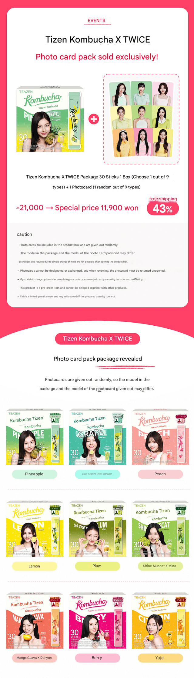 260112 تحديث موقع تيزن مول – حدث TEAZEN KOMBUCHA x TWICE الحصري، السحب وحزمة بطاقات الصور مع الطلبات المسبقة