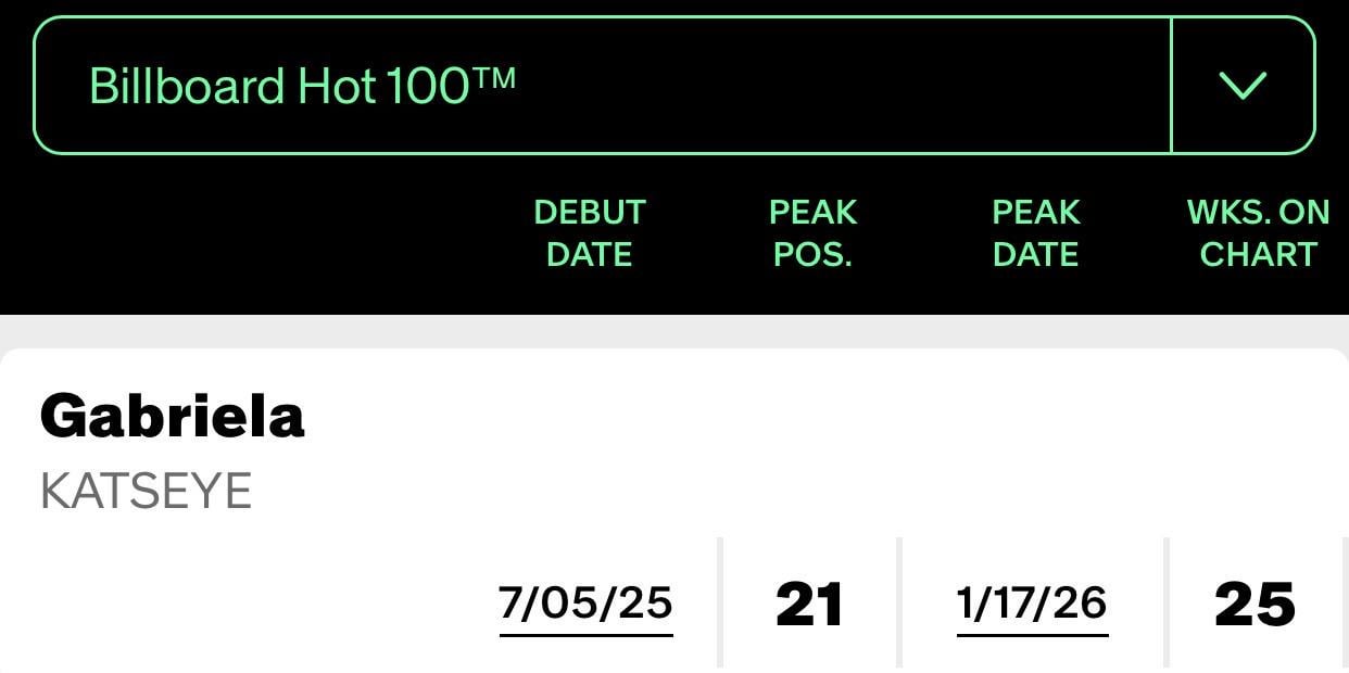 الرئيسية»K-POP»أغنية “Gabriela” لـ KATSEYE ترتفع إلى ذروة جديدة وهي رقم 21 على Billboard Hot 100