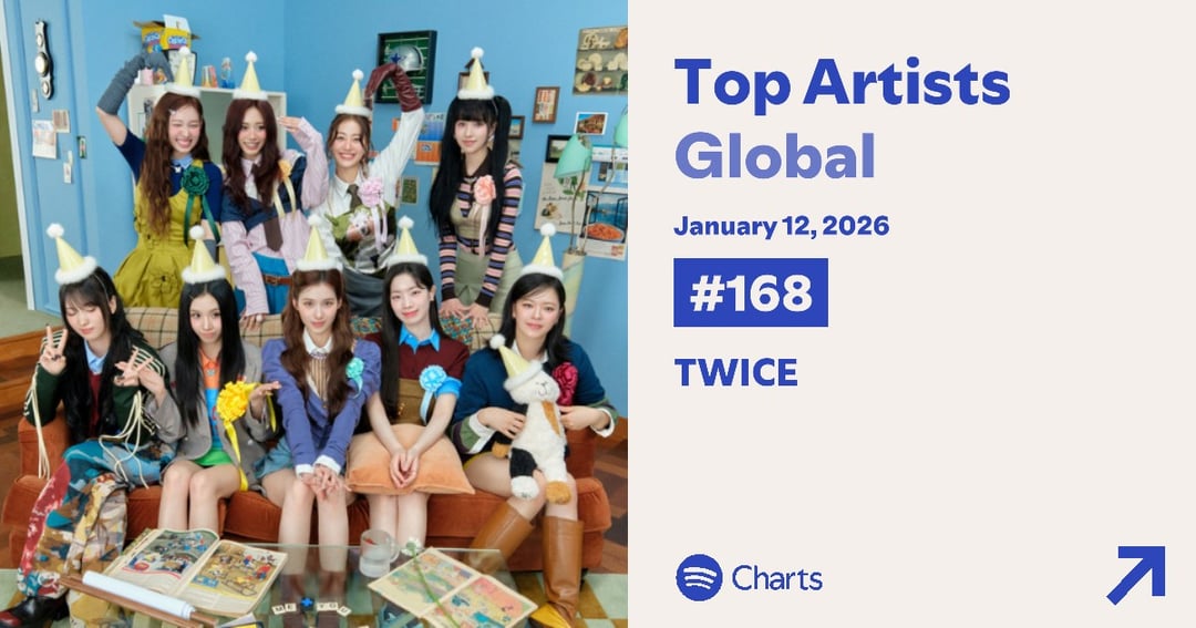 [TWICE] 260113 تحديث OLTSupport Twitter – تجاوزت أغنية “This is For” 130 مليونًا على Spotify. كانت TWICE أيضًا هي فرقة KPop Girl الأكثر استماعًا على Spotify في 12 يناير مع 6.68 مليون استماع، مما أدى الآن إلى تمديد خطها إلى 122 يومًا على التوالي.