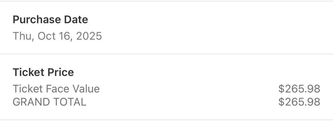 لذلك قمت مؤخرًا بترقية تذكرتي لـ Twice بالأمس. كان لدي 117 مقعدًا في الصف 1-2 والتي كان عدد مقاعدها حوالي 242 مقعدًا بإجمالي 478.58 مقعدًا. ثم رأيت بالأمس تذكرتين بإطلالة أقرب بكثير بقيمة 246.20. وعندما كنت على اتصال، أتذكر أن الرجل كان يقول “سيكون إجمالي المبلغ الخاص بك حوالي 30 دولارًا مع رسوم الترقية” وبعد ذلك عندما كان على وشك تحصيل رسوم مني، أصبح الإجمالي الآن 73.38. والآن لا يمكنني العثور على قائمة بجميع الرسوم والأشياء المخفية على Ticketmaster.. اعتقدت أننا سندفع فقط الفرق والضريبة ونتلقى بريدًا إلكترونيًا يتضمن جميع الرسوم المشحونة أيضًا.. لدي لقطة شاشة للمقعد بالقيمة الأولية التي التقطتها أثناء المكالمة قبل أن تختفي. أنا فقط بحاجة إلى مساعدة في الفهم، شكرا لكم مقدما!