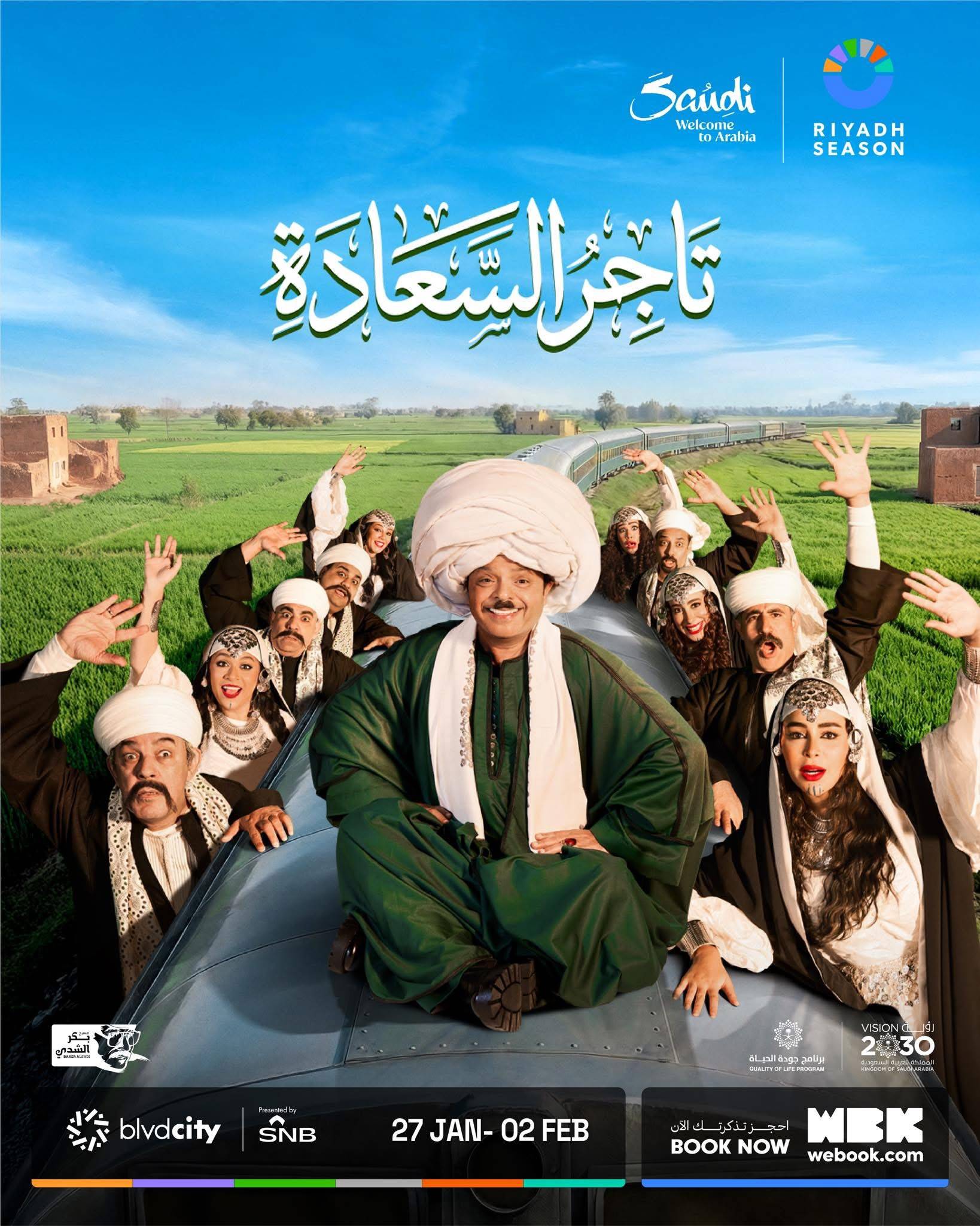الملصق الترويجي لمسرحية «تاجر السعادة» (حساب المستشار تركي آل الشيخ على «فيسبوك»)