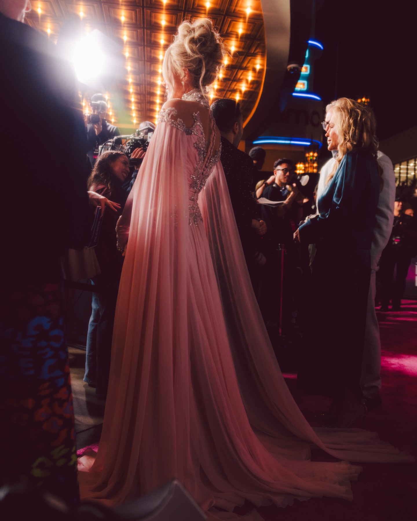 أمّا الكُمّين، فتميّزا بتفصيل أشبه بوشاحٍ طويل ينسدل بانسيابية مع حركة الفستان، ما منحه حضوراً درامياً راقياً على السّجادة الحمراء، وعزّز طابعه السينمائي.