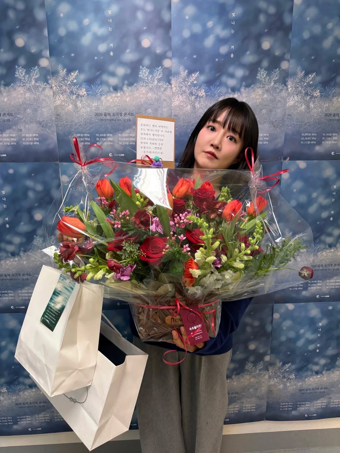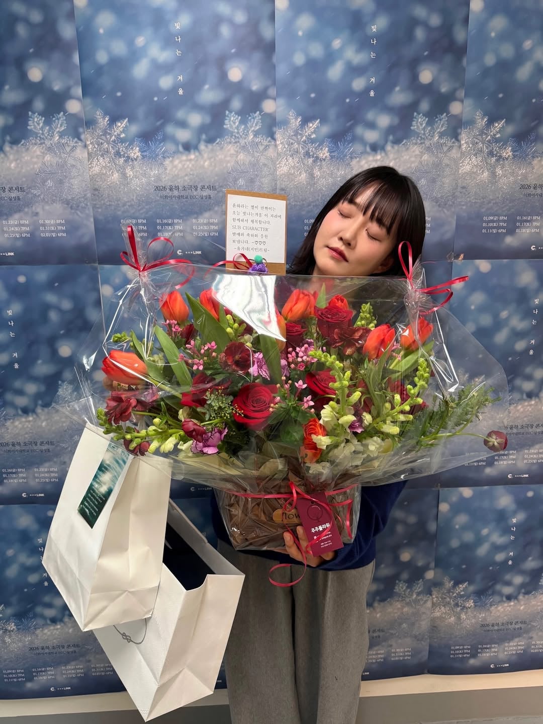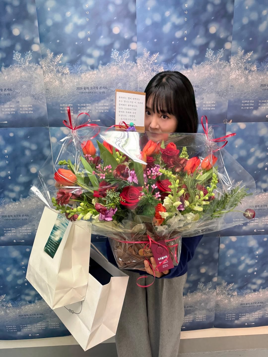 عائلة يو (جيمين)(ترجمة البطاقة مع الباقة)💌 يسعدنا أن نكون هنا معًا اليوم، في Shining Winter، حيث تتألق النجمة التي تُدعى Younha. نحن نرسل التهاني والدعم لإصدار “SUB CHARACTER” مع خالص التقدير،