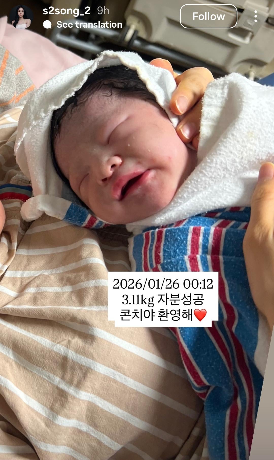رحبت Jung Minsong (الجديدة سابقًا) بطفلها الأول