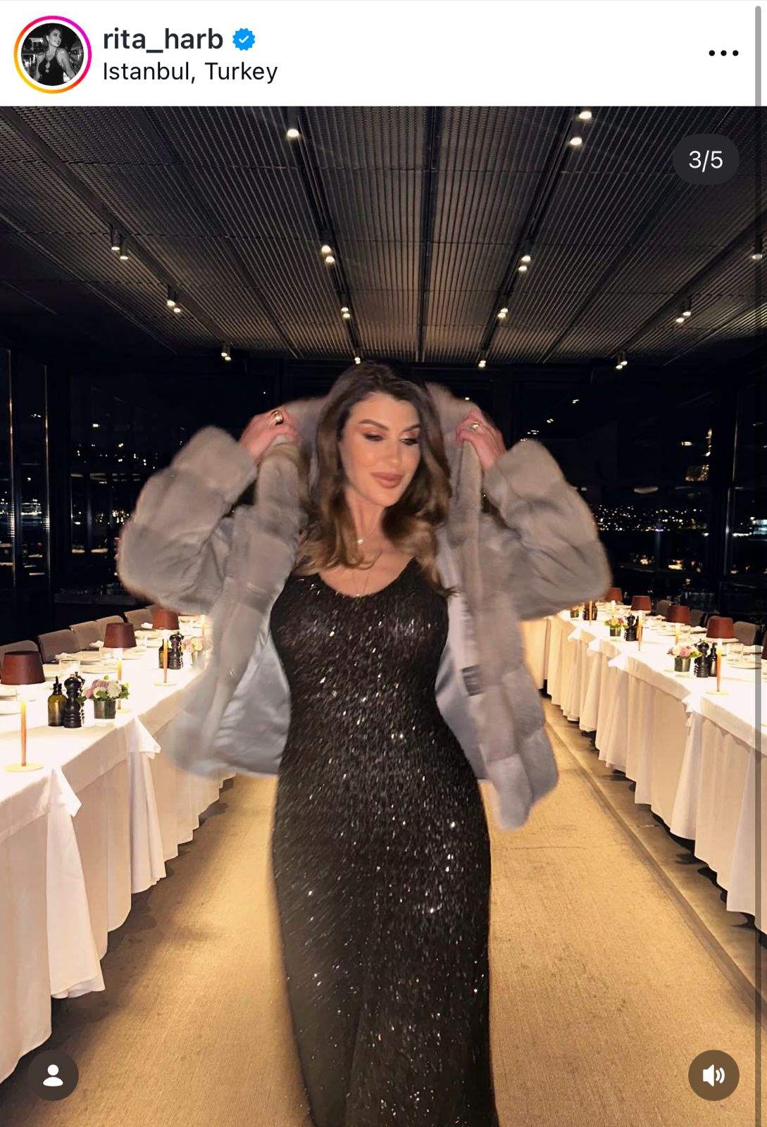شاركت الإعلامية والممثلة ريتا حرب متابعيها على إنستغرام صوراً جديدة أثارت إعجاب جمهورها، إذ ظهرت بفستان أسود لامع متناسق مع جاكيت رمادية أنيقة، وأكملت إطلالتها بمكياج ناعم وتسريحة شعر جذابة.