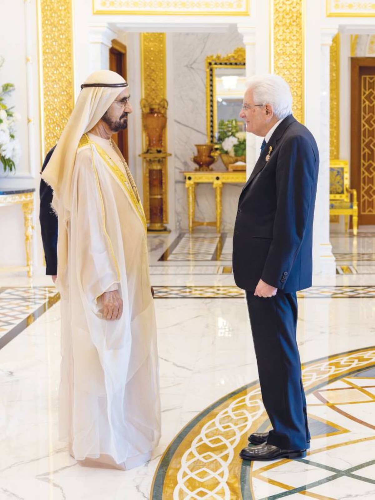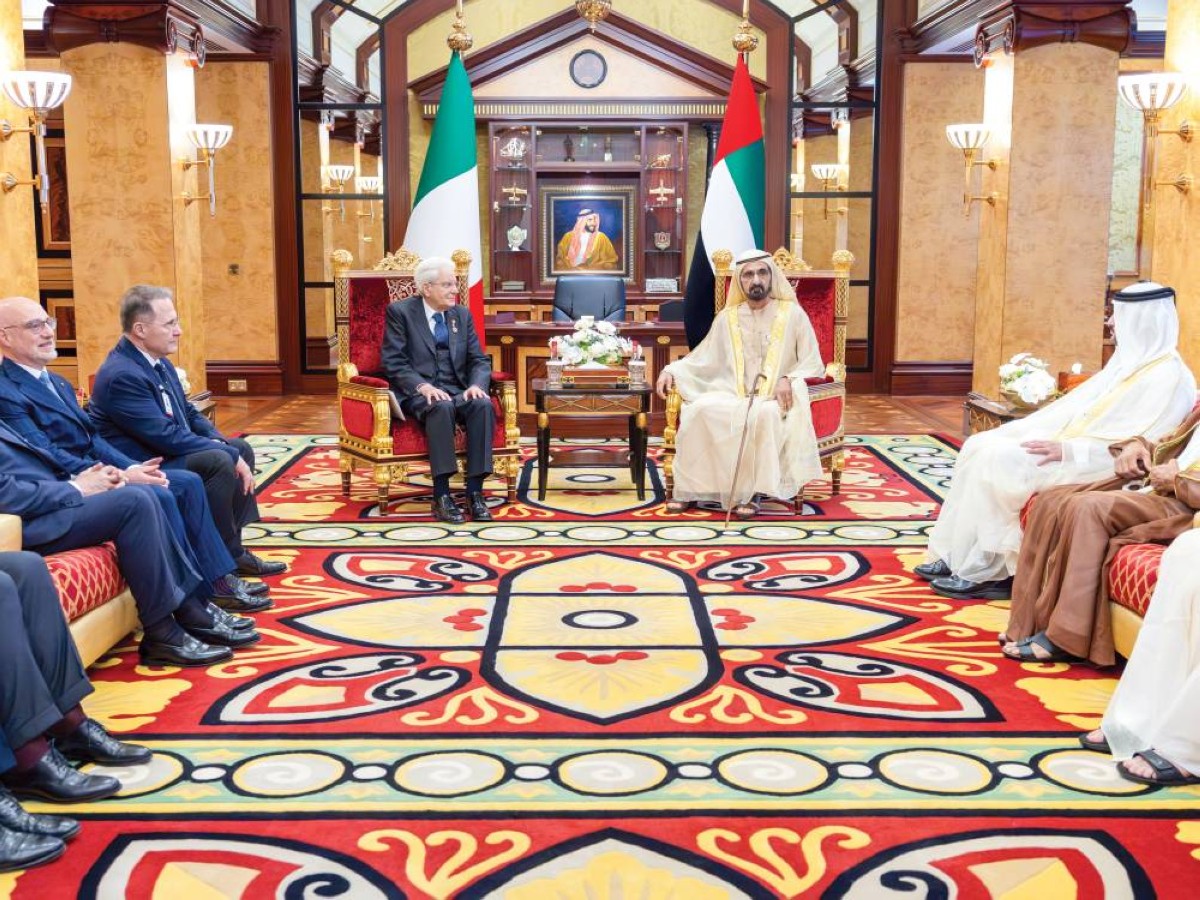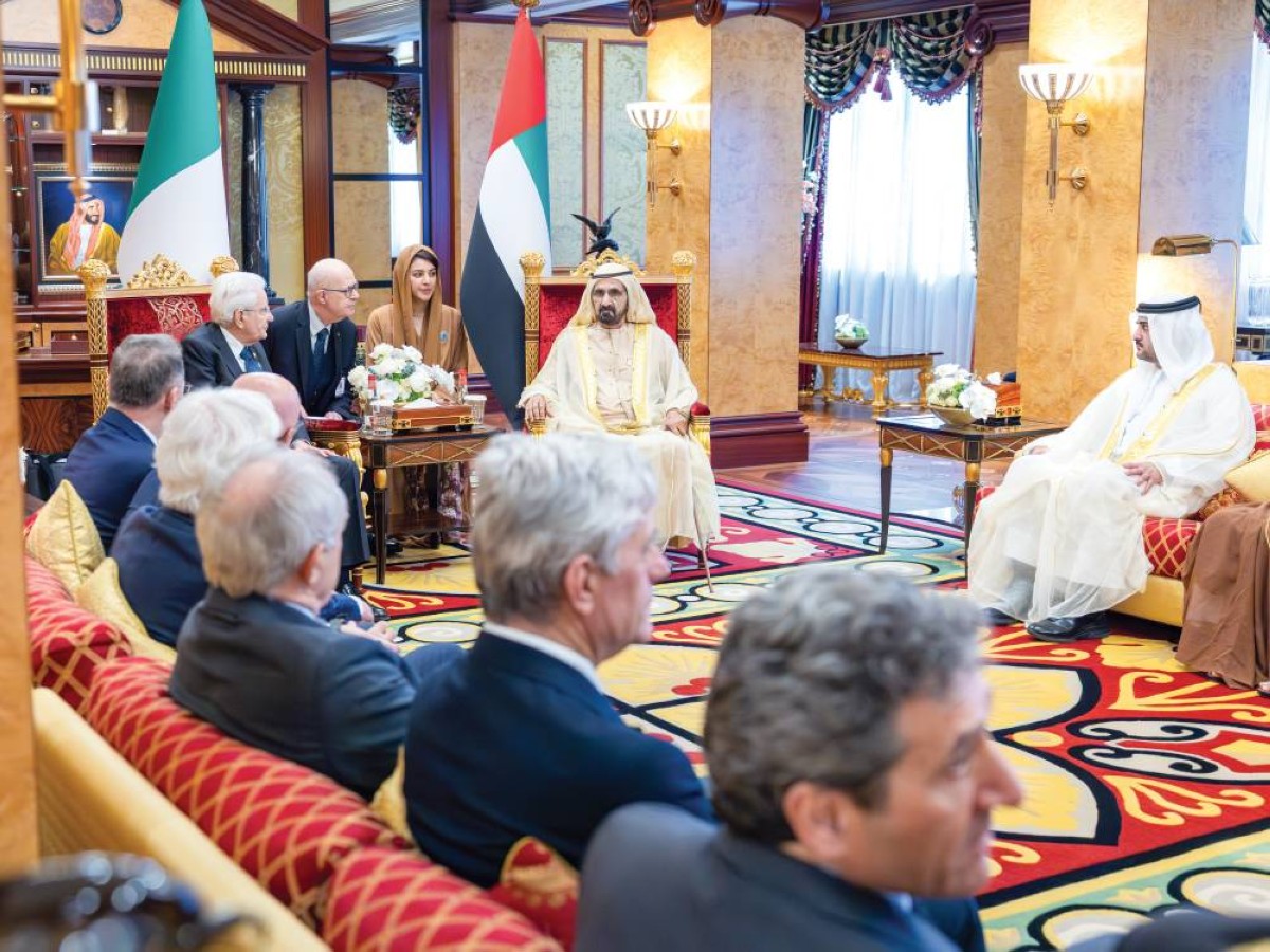 استقبل صاحب السمو الشيخ محمد بن راشد آل مكتوم، نائب رئيس الدولة رئيس مجلس الوزراء حاكم دبي، رعاه الله، أمس، في قصر زعبيل، سيرجيو ماتاريلا، رئيس جمهورية إيطاليا، الذي يقوم بزيارة رسمية إلى دولة الإمارات، وذلك في إطار حرص الجانبين على تعزيز العلاقات الثنائية وتوسيع آفاق التعاون المشترك بين البلدين الصديقين.
