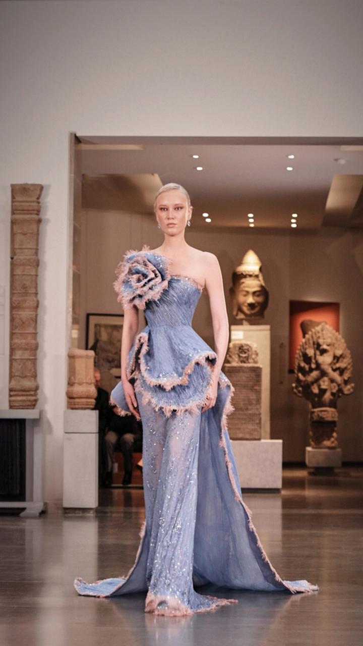 في باريس، قدمت منال مجموعتها تحت عنوان “امرأة النور” في Musée national des arts asiatiques – Guimet، لتجسد فكرة الانبعاث من الظلال والصعود نحو الضوء. بدا كل فستان وكأنه ولادة جديدة لامرأة واثقة وقوية، تُحوّل التاريخ إلى توهج ساحر، وتعيد تعريف الأنوثة في أبهى صورها.