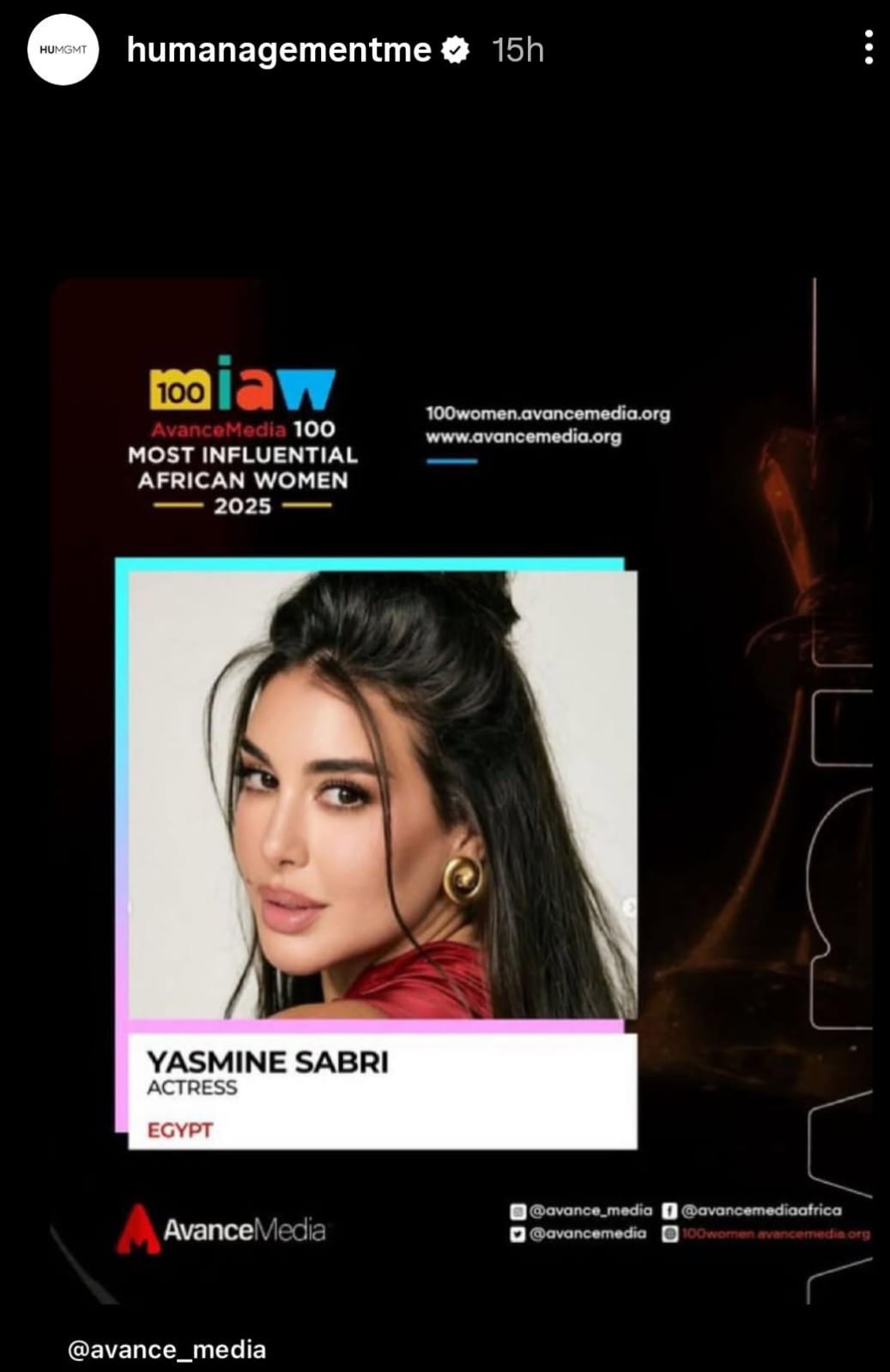 في هذا السياق، حرصت شركة “هيومانجمنت”، الرائدة في إدارة أعمال المشاهير، على الاحتفاء بهذا الفوز الكبير؛ حيث نشرت الشركة عبر خاصية القصص القصيرة على حسابها الرسمي في “إنستغرام”، صورة لياسمين، معلنةً عن اختيارها ضمن هذه القائمة العالمية التي تسلط الضوء على النساء اللواتي يفتحن آفاقاً جديدة ويؤثرن في مستقبل القارة السمراء.