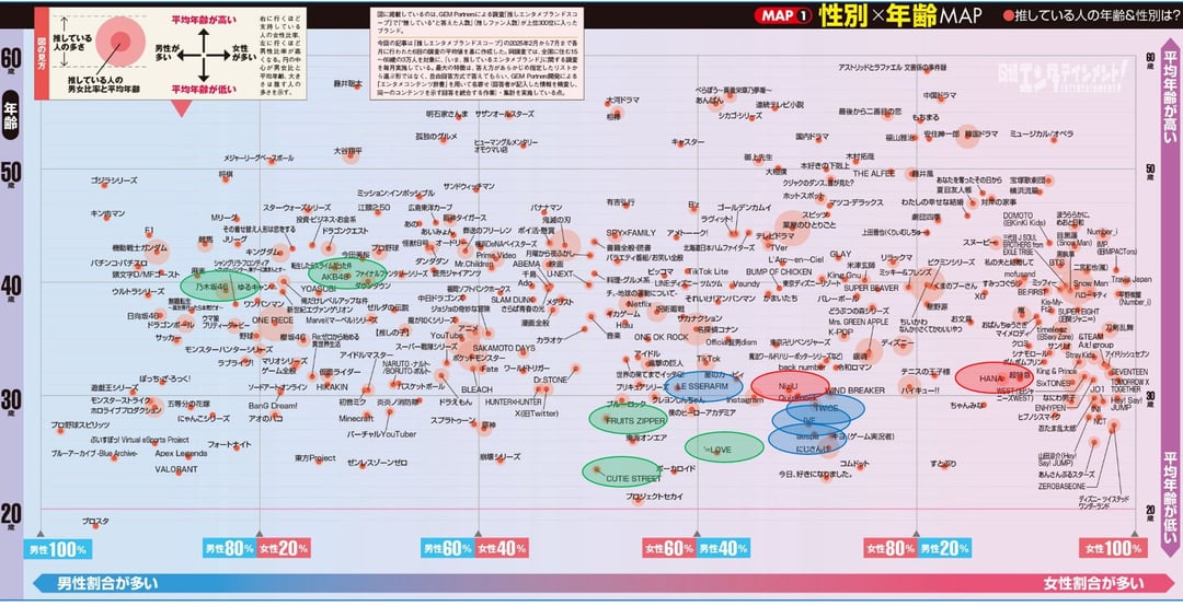 [LE SSERAFIM] وفقًا للإصدار الأخير (أكتوبر 2025) من “خريطة نشاط معجبي أوشيكاتسو”، يبلغ عدد FEARNOTs الياباني تقريبًا. 42% ذكور الآن.