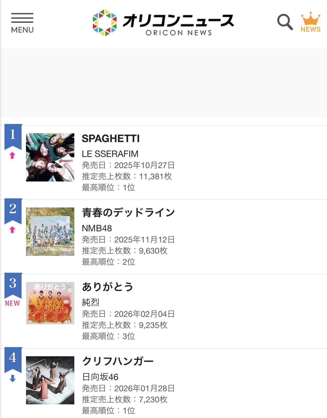 [LE SSERAFIM] العودة إلى رقم 1 على Oricon