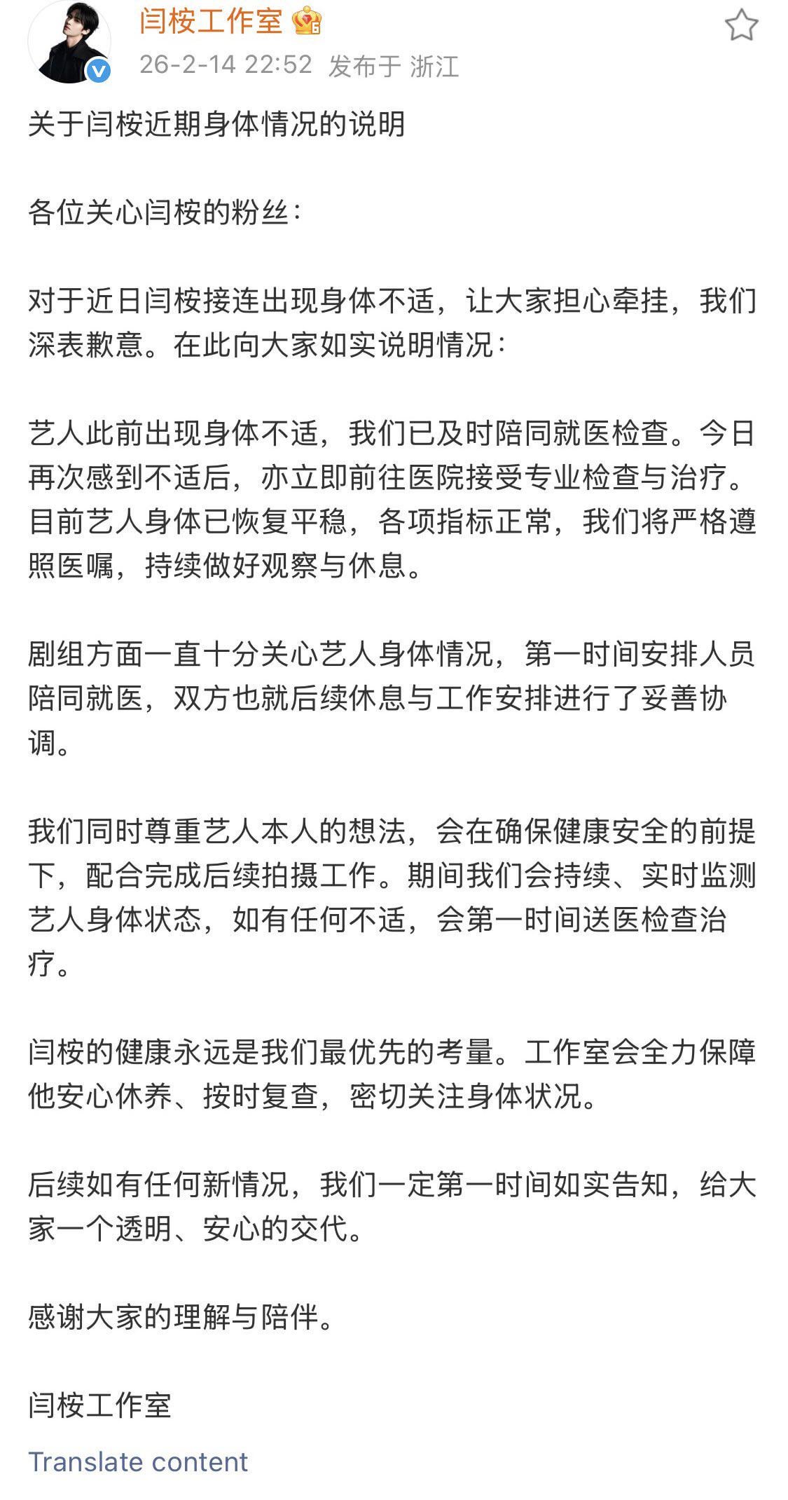 يشارك استوديو Yanan تحديثًا عن الحالة الصحية لـ PENTAGON Yanan بعد المخاوف بشأن حالة Yanan أثناء تصوير Transfer Golden Hairspin في الأيام القليلة الماضية.