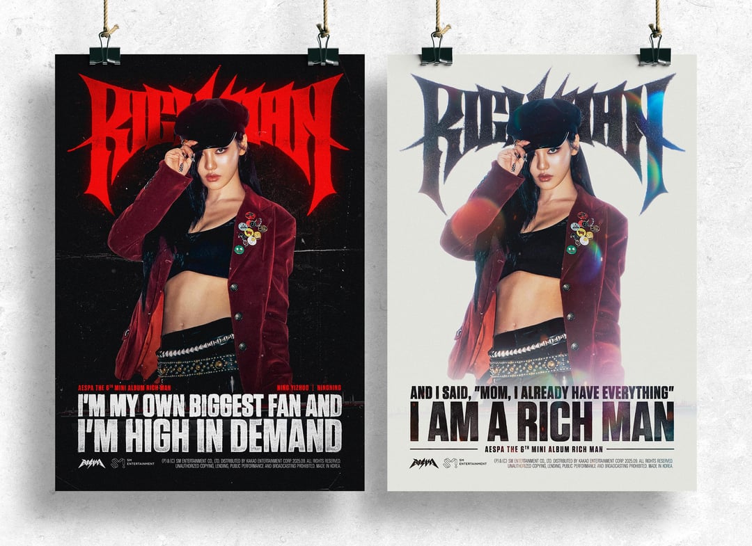 مجموعة ملصقات “Rich Man” من aespa – ساطعة
