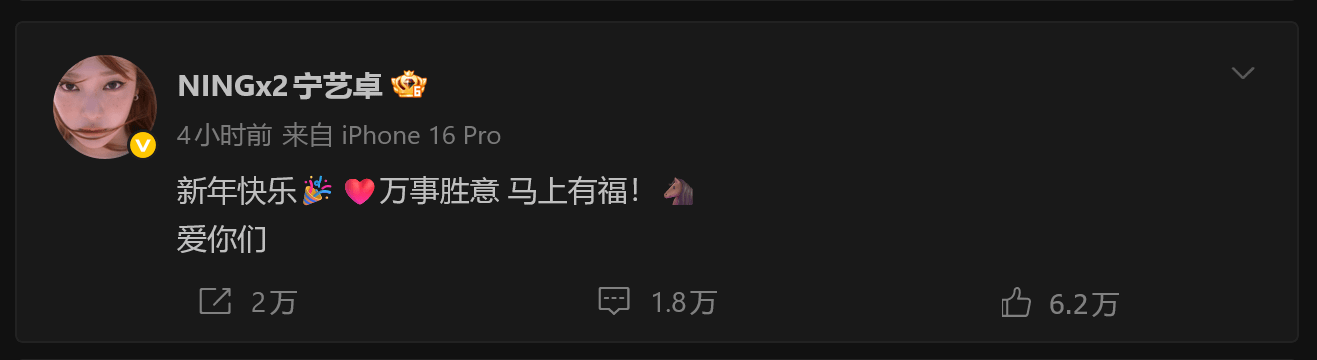 مصدر (الترجمة الآلية) سنة جديدة سعيدة 🎉❤️ أتمنى أن يكون كل شيء على ما يرام، وسوف تكون مباركًا قريبًا! 🐴 احبك aespa aespa