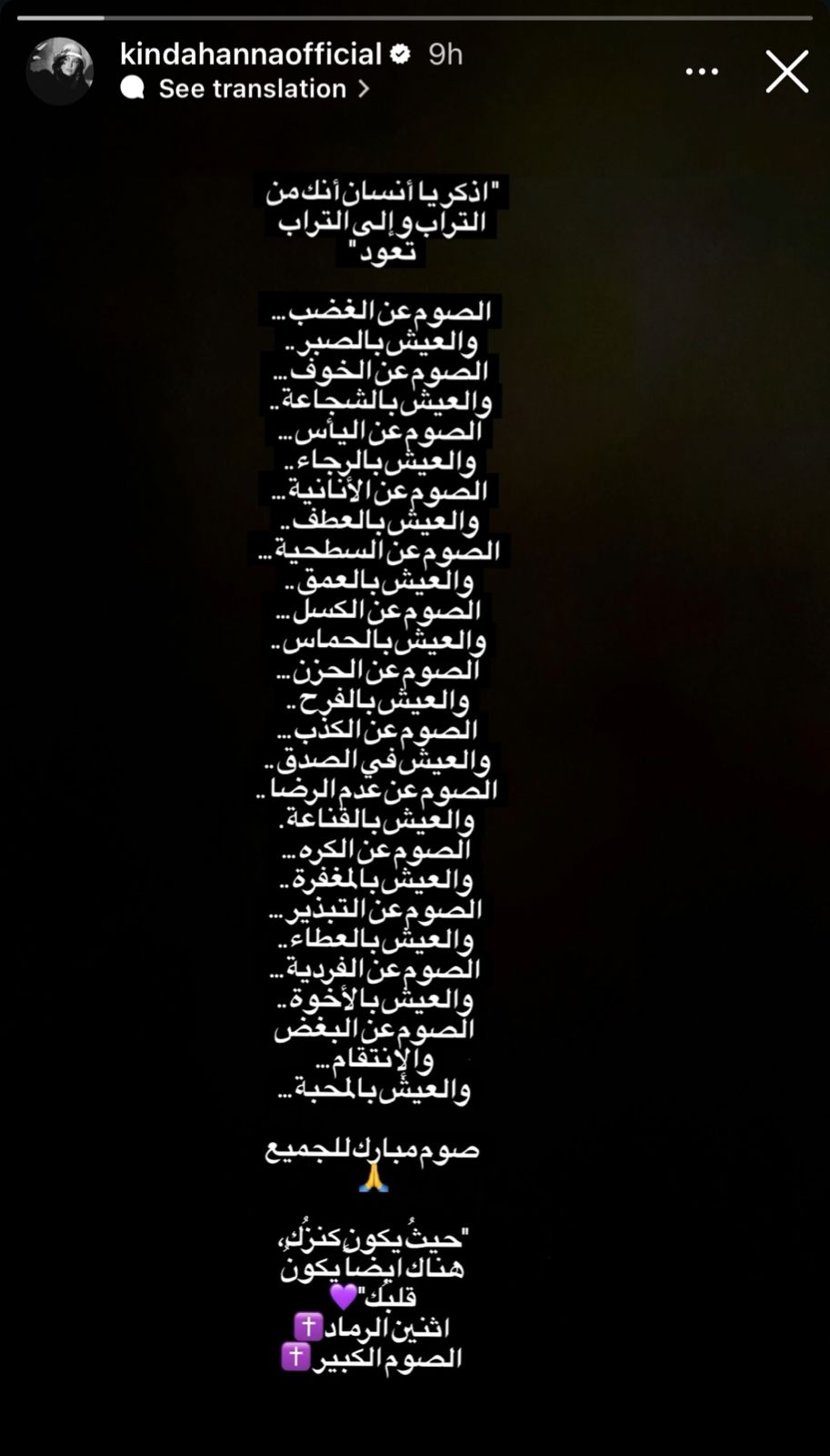 كما أضافت اقتباساً معبراً: “حيث يكون كنزك، هناك أيضاً يكون قلبك”، في إشارة إلى أهمية التركيز على القيم الروحية خلال هذه الفترة.