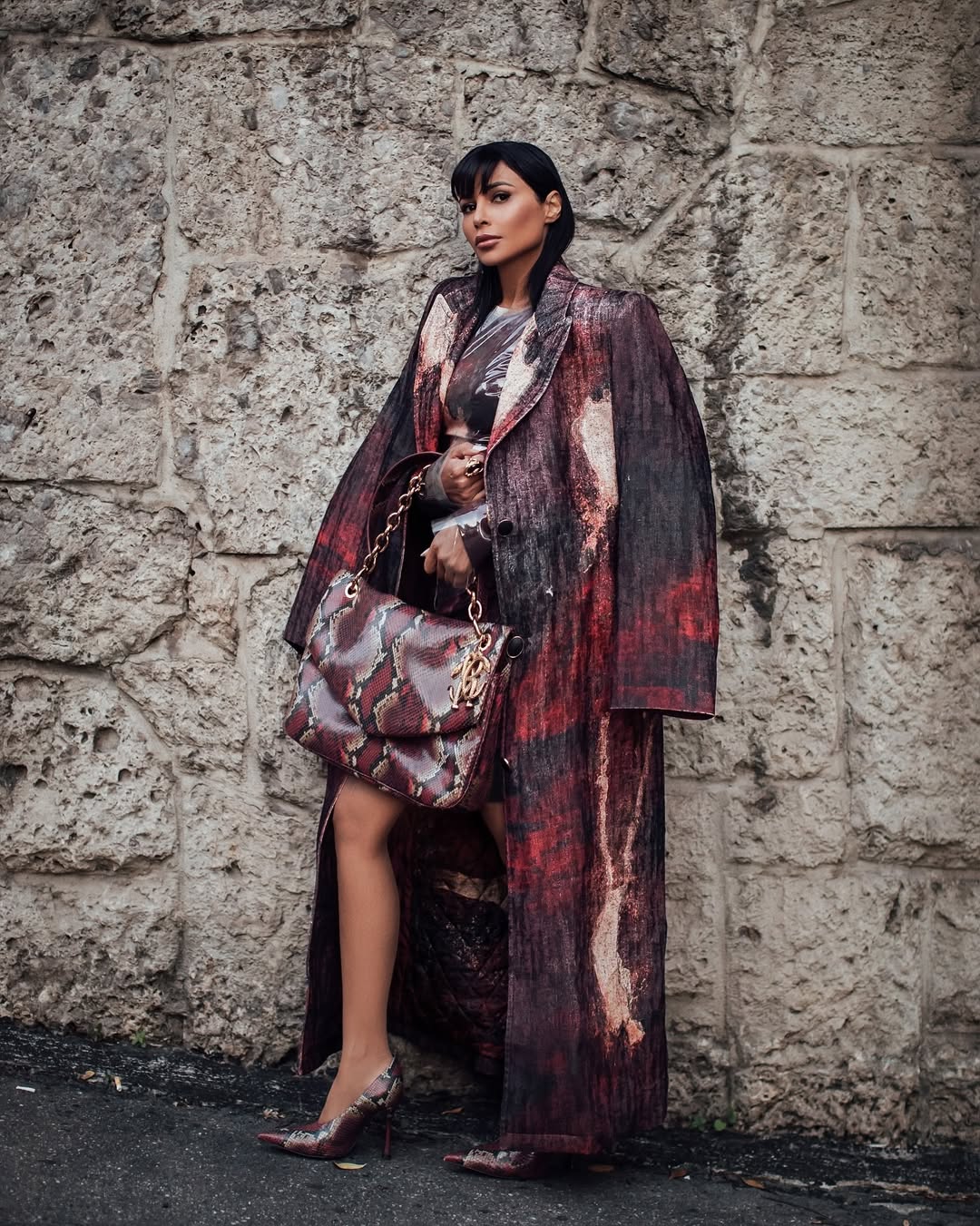 في إطلالاتها العصرية، تثبت مهيرة أن الأناقة يمكن أن تكون مرحة ومصقولة في الوقت نفسه. تألقت بفستان مرقّط بالأحمر من Roberto Cavalli مع معطف وحقيبة بالنقشة نفسها، في إطلالة جريئة لكن منسجمة. وفي ظهور آخر، اختارت الأبيض الأوف وايت من Max Mara — بنطلون وكنزة ومعطف بلون واحد لتجسّد أناقة هادئة تشبه صفاء أمسيات رمضان.