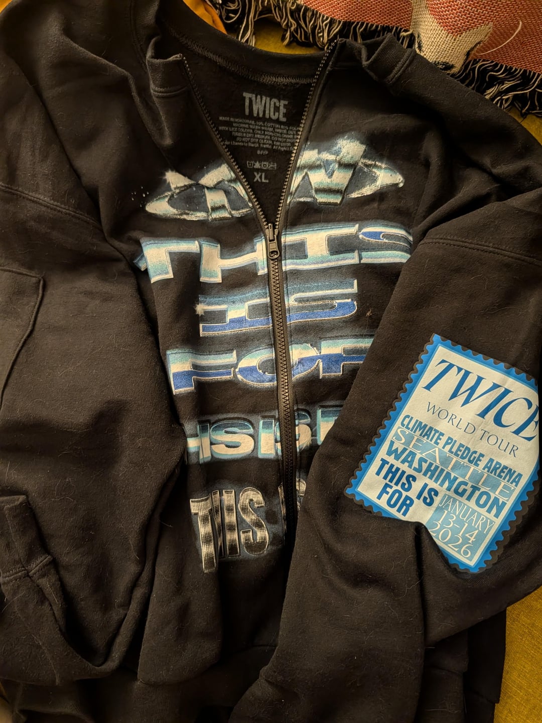 لقد حضرت اليوم الثاني من معرض سياتل، لذا بحلول ذلك الوقت لم تكن السترات ذات القلنسوة ذات السحاب من تحرير المدينة متوفرة بمقاسي للأسف. انتهيت من شراء الياقة المستديرة ولكني أردت أن أجعلها خاصة بي. لذلك حصلت على سحاب بالإضافة إلى تقصير طول هذه الياقة الدائرية قليلاً.