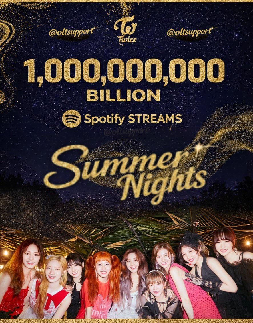 [TWICE] 260226 تحديث تويتر OLTSupport – تجاوزت أغنية “Summer Nights” لفرقة TWICE رسميًا المليار استماع على Spotify. يصبح ألبومهم الثاني الذي يصل إلى هذا الإنجاز.