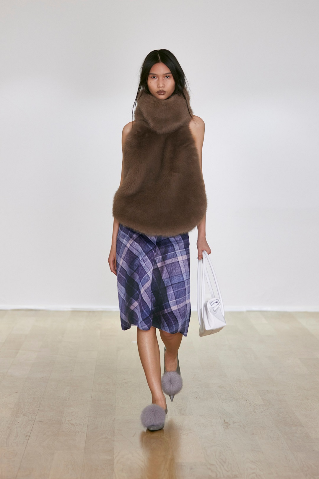 الفرو مع التنورة الكارو لتوازن غير تقليدي