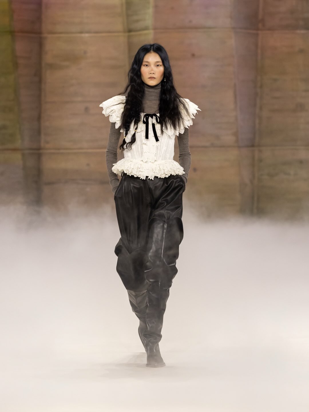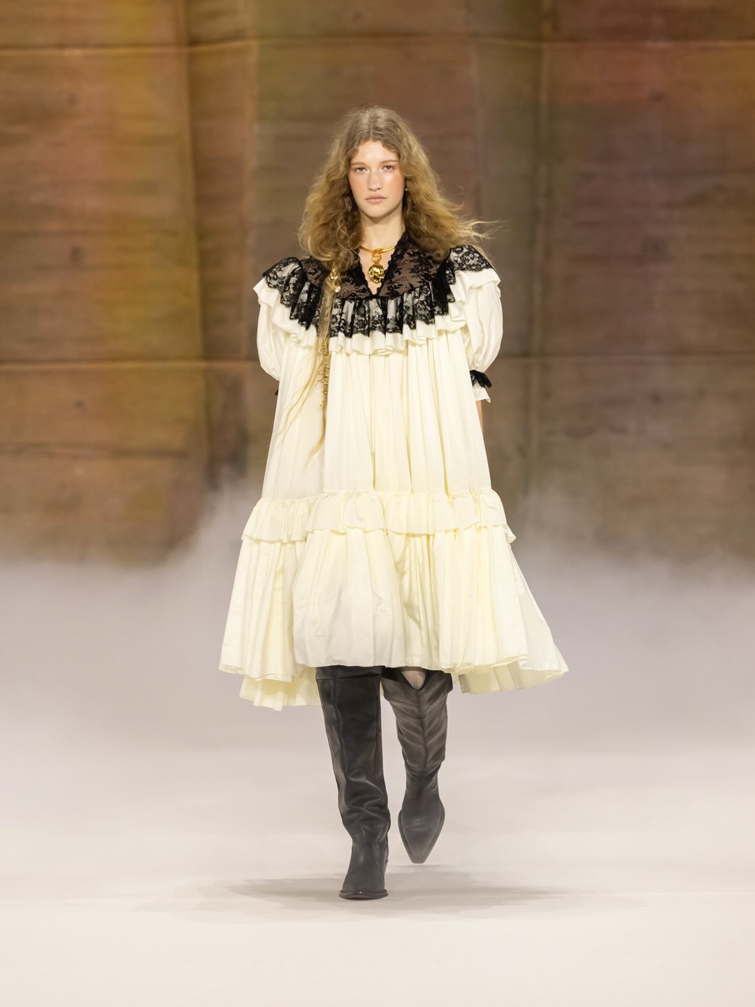 استوحت كامالي إطلالاتها من تراث أوروبي متنوع، من الأزياء الشعبية الهولندية إلى مسابقة الشعر الطويل في ليتوانيا، مروراً بأرشيف كارل لاجيرفيلد في دار Chloé. ظهرت الخطوط المعمارية في البذلات الصوفية والكتفين المنفصلين، بينما حافظت المجموعة على دفء الروح البوهيمية التي تشتهر بها الدار.