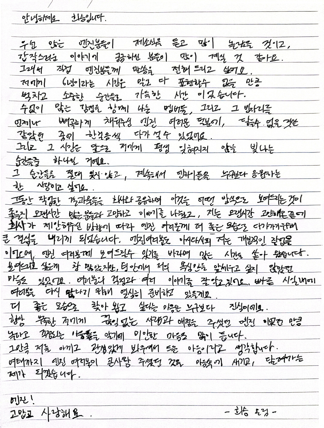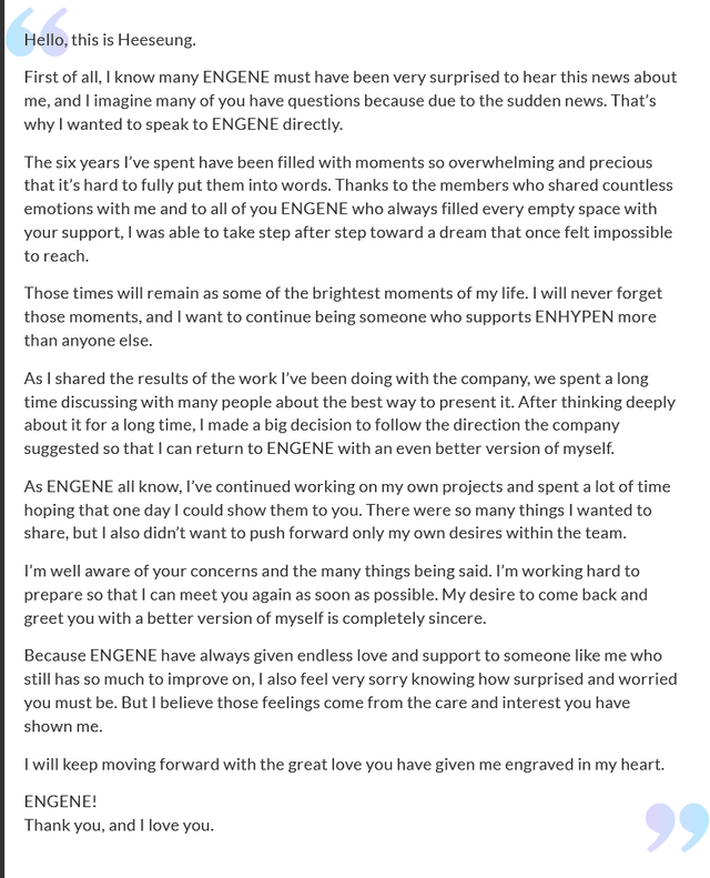 Heeseung يشرح قراره بترك ENHYPEN في رسالة مكتوبة بخط اليد