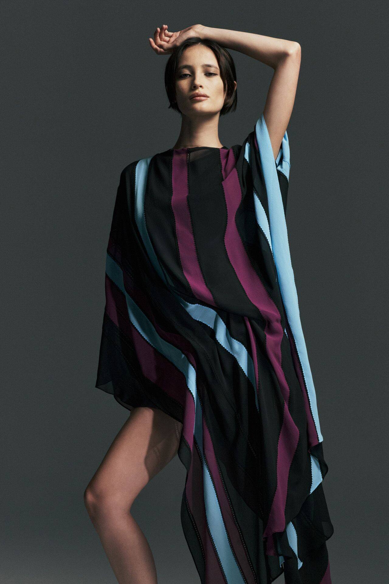 في مجموعته الأخيرة لخريف وشتاء 2026-2027 التي عرضت مؤخراً في باريس، أثبت إسبر أن “العمارة” ليست للمباني فقط، بل للأجساد أيضاً. استلهم المصمم اللبناني الأصل رؤيته من عناصر الأرض، فجاءت التصاميم كمزيج مذهل بين الصلابة والسيولة. وقد برزت تقنيته الشهيرة في “القصات المفرغة” التي لا تكشف الجسد بقدر ما تحتفي بهندسته، مما خلق لغة بصرية تجمع بين الحياء والجرأة. كما شهدنا تزاوجاً شاعرياً بين الحرير المنساب وقطع الكوارتز والمعادن المشغولة يدوياً التي استخدمها كروابط للأقمشة، وكأن الثوب خرج للتو من باطن الأرض ليلتف حول قوام المرأة العصرية.
