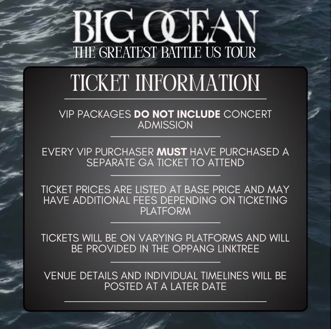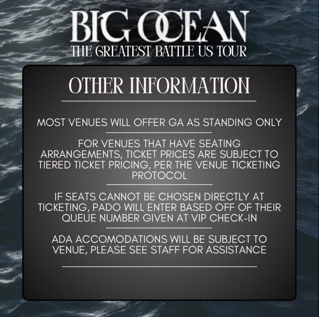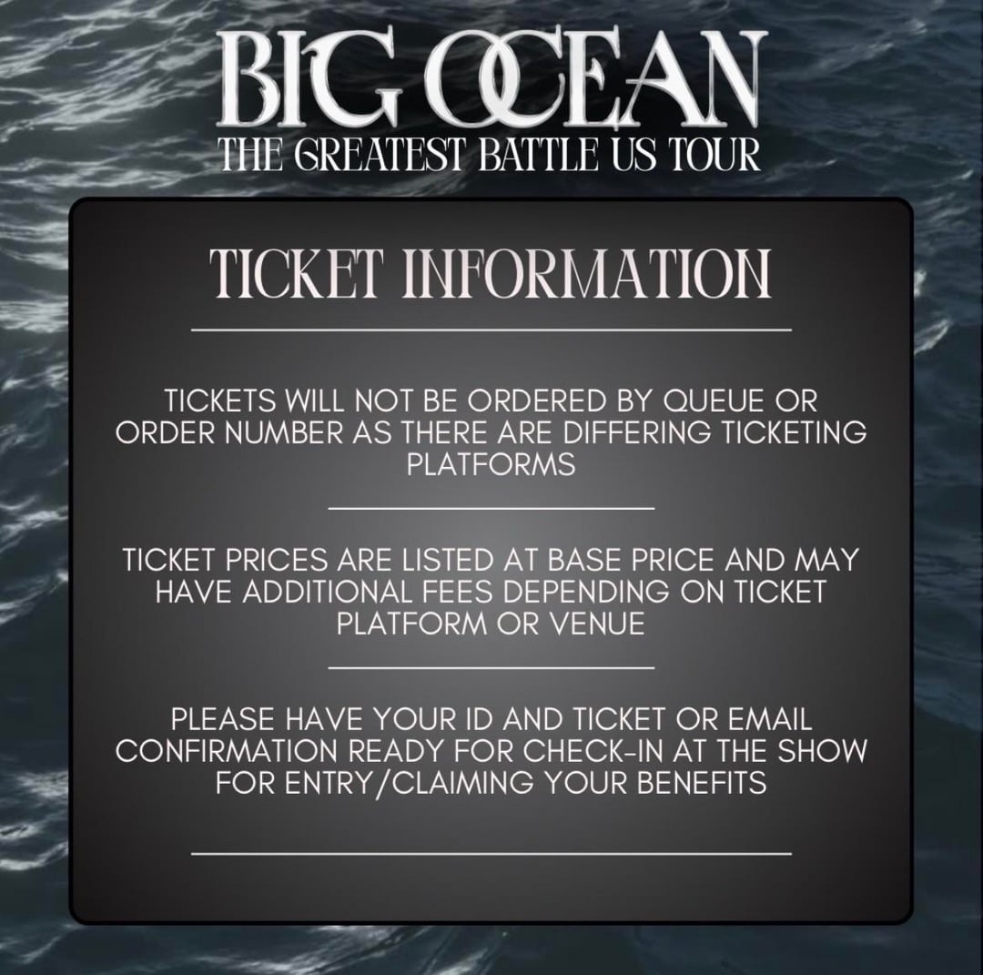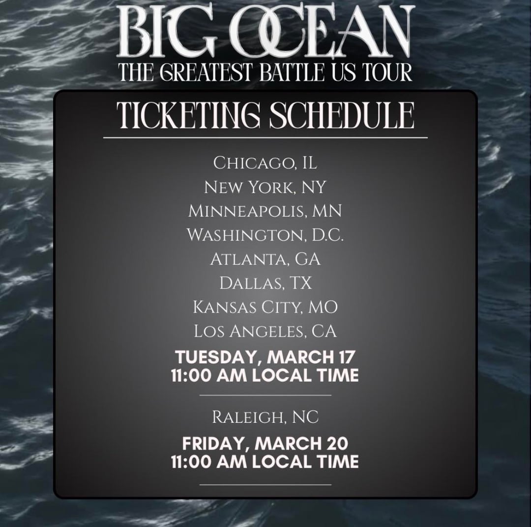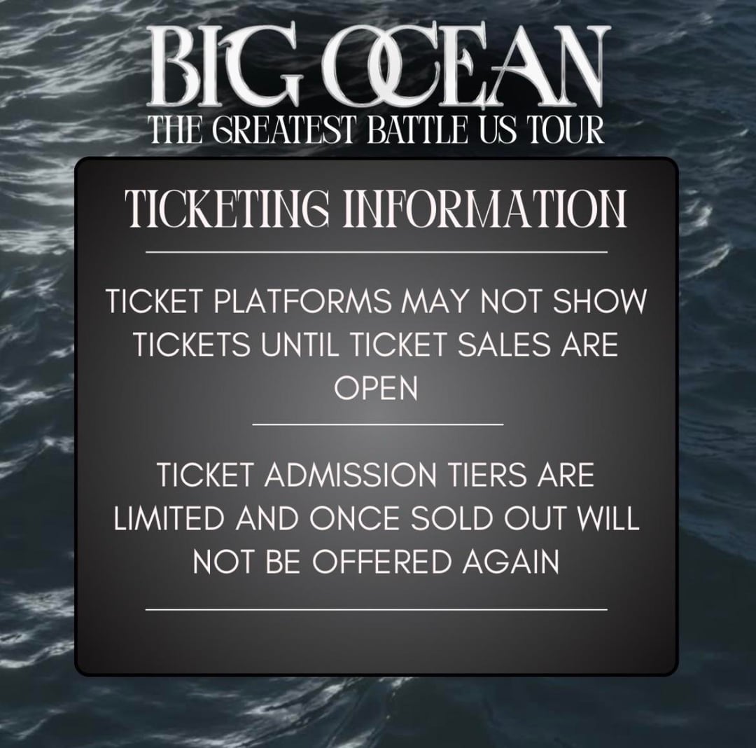الرئيسية»K-POP»المحيط الكبير – جولة أعظم معركة في الولايات المتحدة، الأماكن، التذاكر ومعلومات الجولة (ملصقات الإعلان)