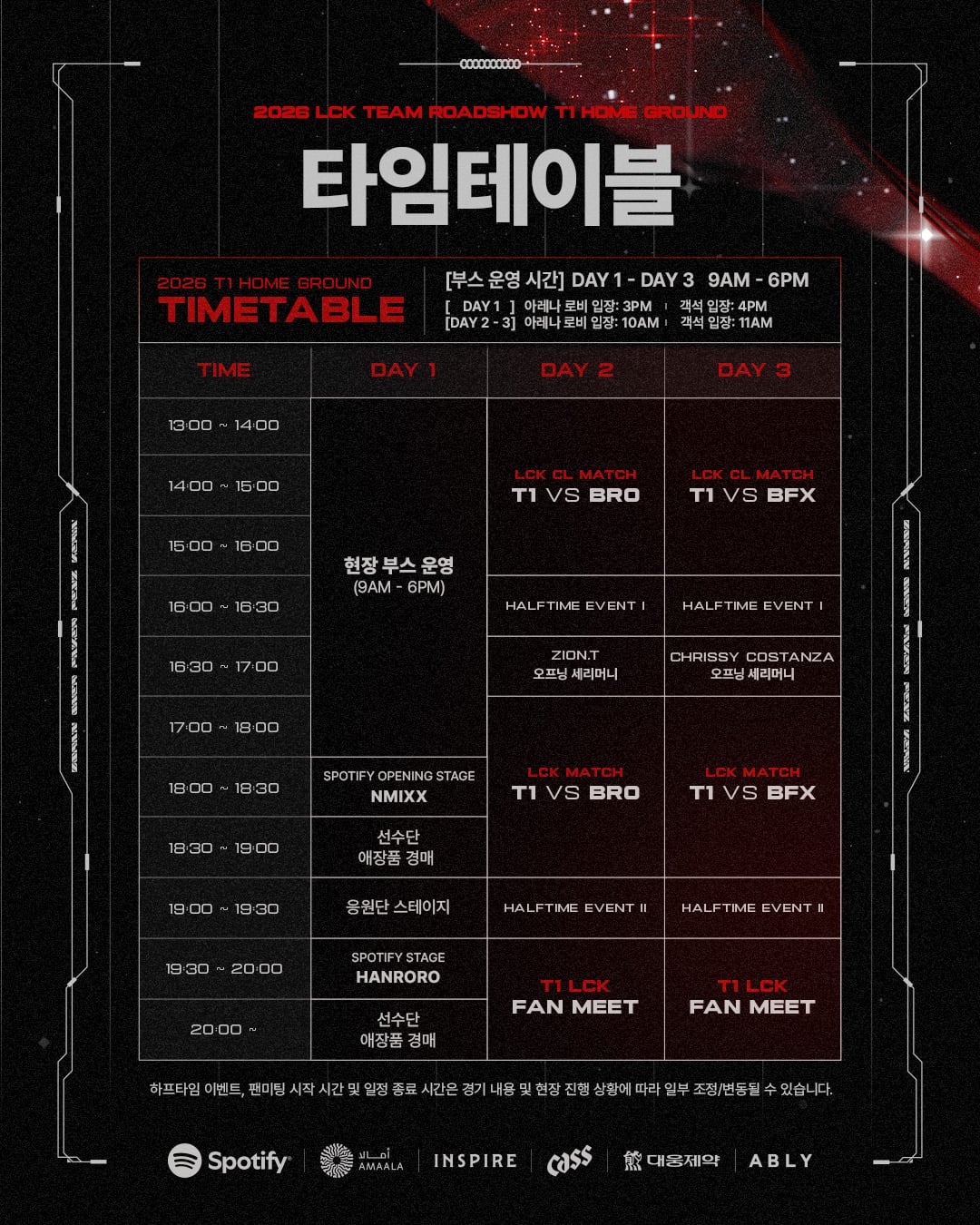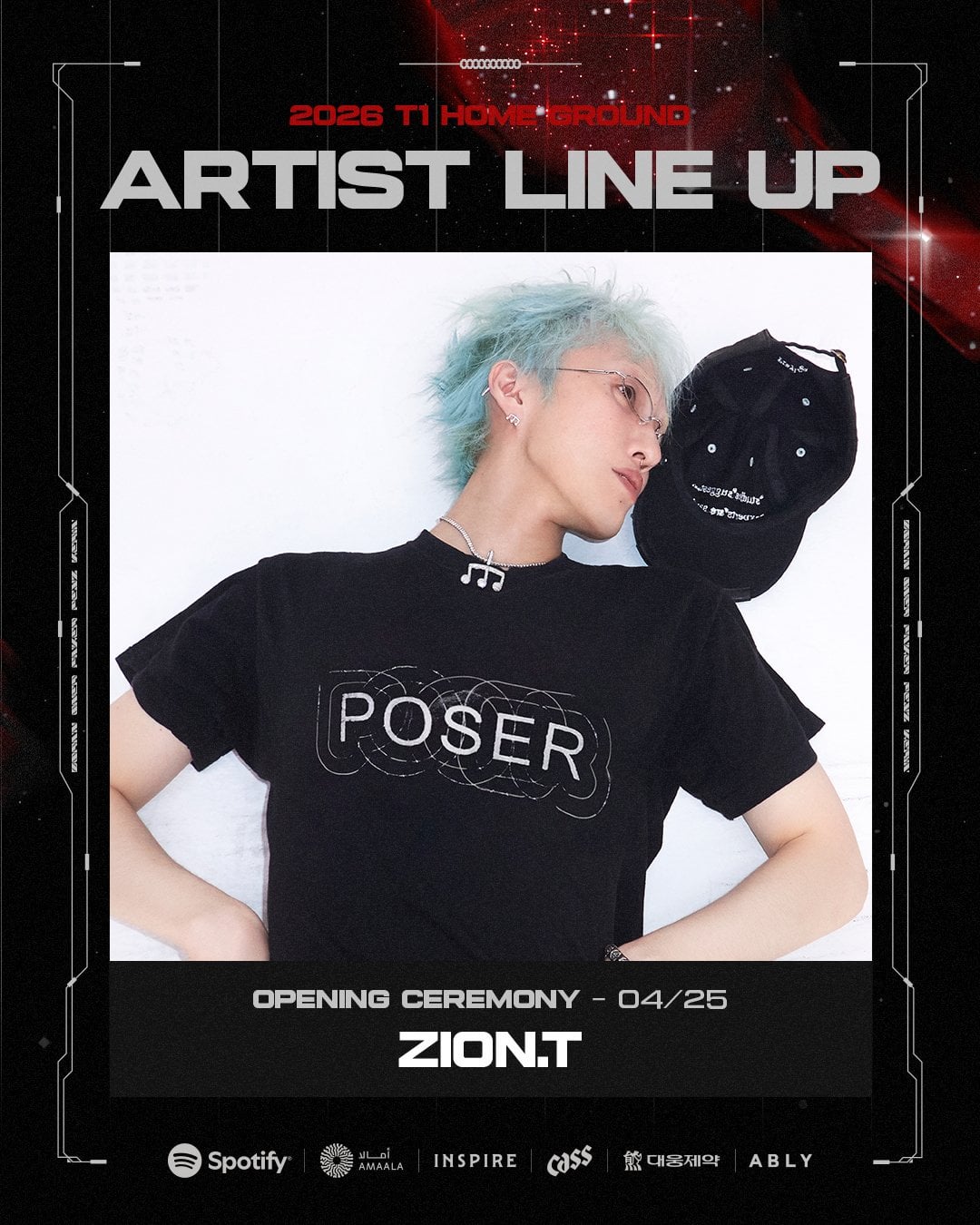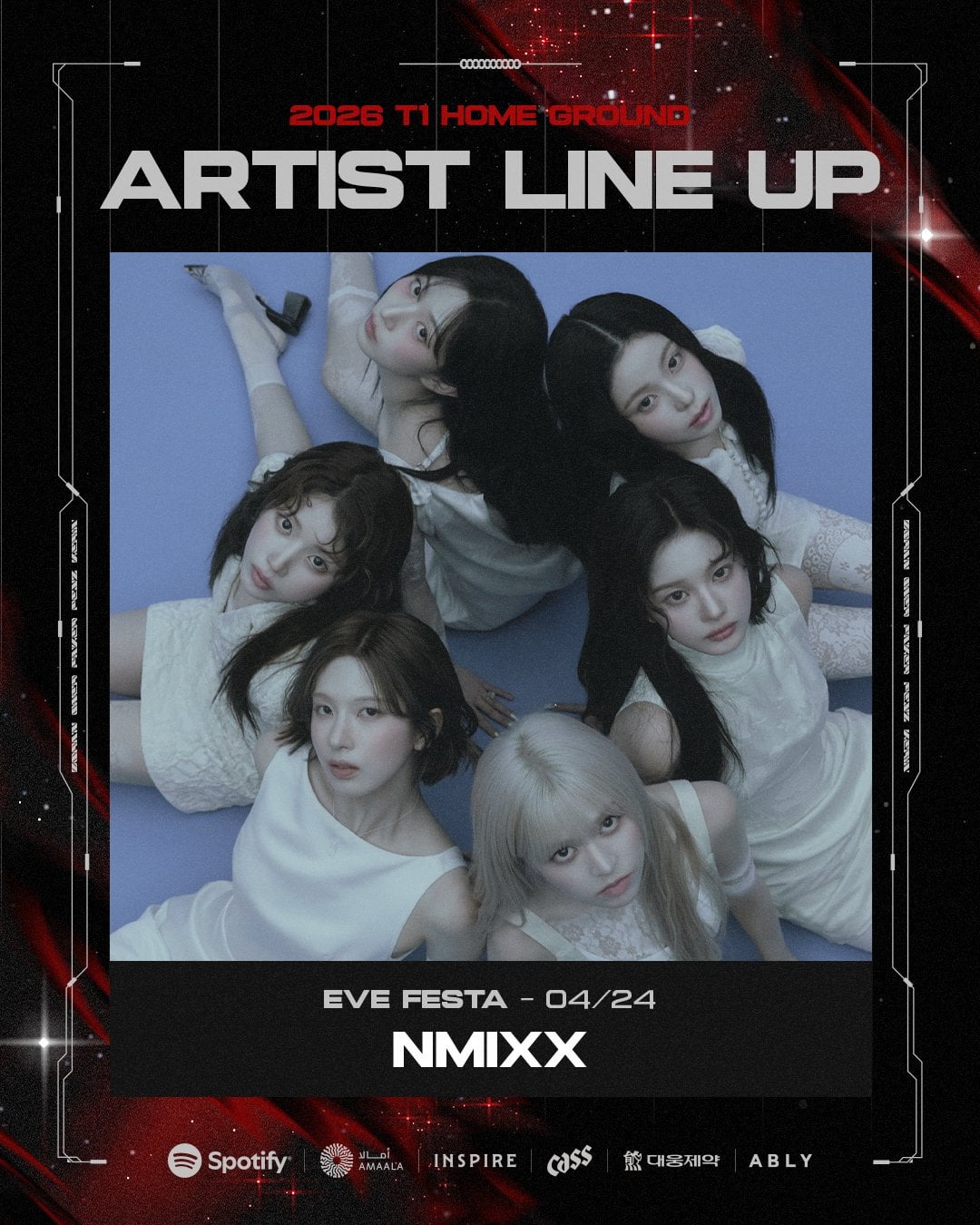 تم الإعلان عن NMIXX وHanroro وZion.T في تشكيلة الفنانين لعام 2026 T1 Home Ground
