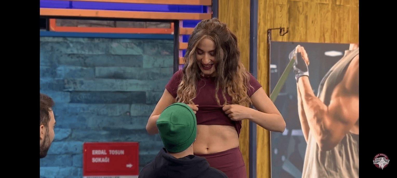 Ezgi özyürekoğlu Atakan çelike göbeğini gösteriyor