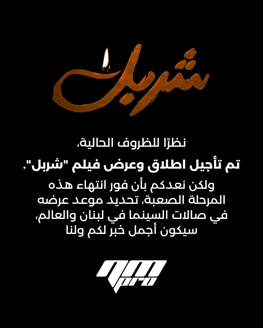 وجاء في بيان الشركة على حسابها في  “إنستغرام”: ​نظرًا للظروف الحالية، تم تأجيل إطلاق وعرض فيلم “شربل”ولكن نعدكم بأن فور انتهاء هذه المرحلة الصعبة، تحديد موعد عرضه في صالات السينما في لبنان والعالم، سيكون أجمل خبر لكم ولنا.