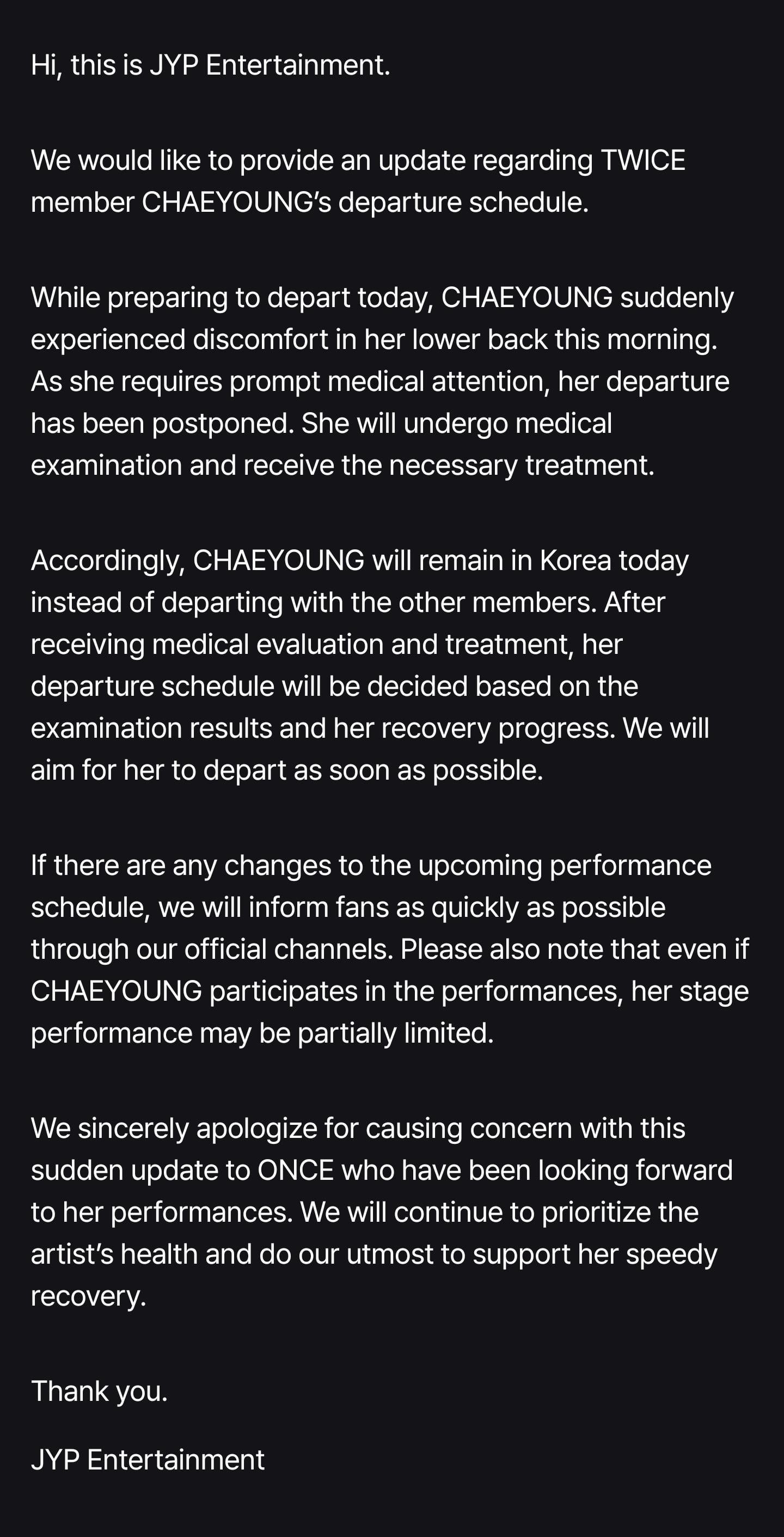 260326 تحديث معجبي TWICE - إشعار بخصوص جدول TWICE CHAEYOUNG القادم