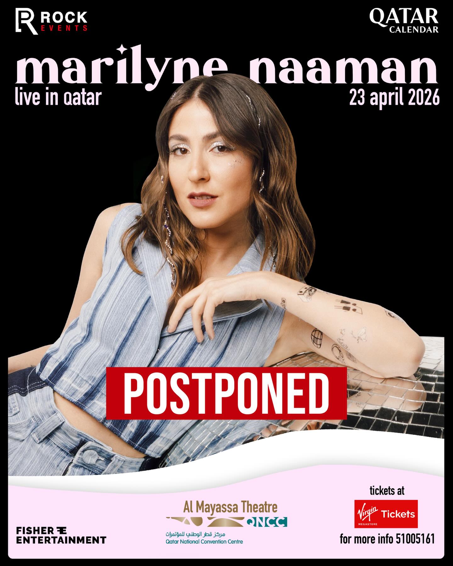 في هذا السياق، نشرت الشركة المنظمة للحفل “Rock Production” ملصقاً ترويجياً عبر حساباتها الرسمية ممهوراً بكلمة “POSTPONED” (تأجل)، موضحة أن القرار جاء تماشياً مع الأوضاع الحالية، مع تمنياتها بالأمان للجميع.