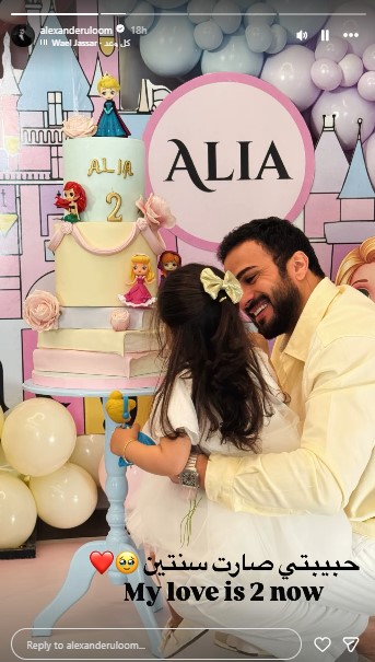 في أجواء عائلية يغمرها الفرح والدفء، احتفل الثنائي رحمة رياض وألكسندر علوم، بيوم ميلاد ابنتهما «عالية» الثاني؛ حيث شاركا متابعيهما لحظات خاصة من الاحتفال، عبر منصات التواصل الاجتماعي الخاصة بهما.