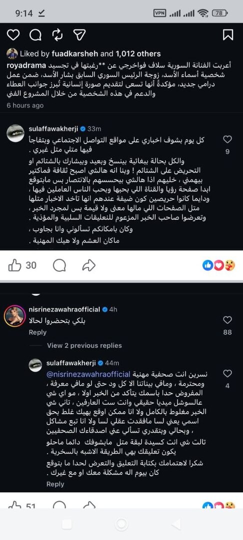 كما عبرت عن استغرابها من قيام صفحات إعلامية معروفة بإعادة نشر هذه المواد دون أدنى تحقق أو تواصل معها، رغم وجود قنوات واضحة وسهلة للتأكد من أي معلومة، معتبرة أن هذا السلوك يطرح علامات استفهام كبيرة حول المهنية والمسؤولية الإعلامية.