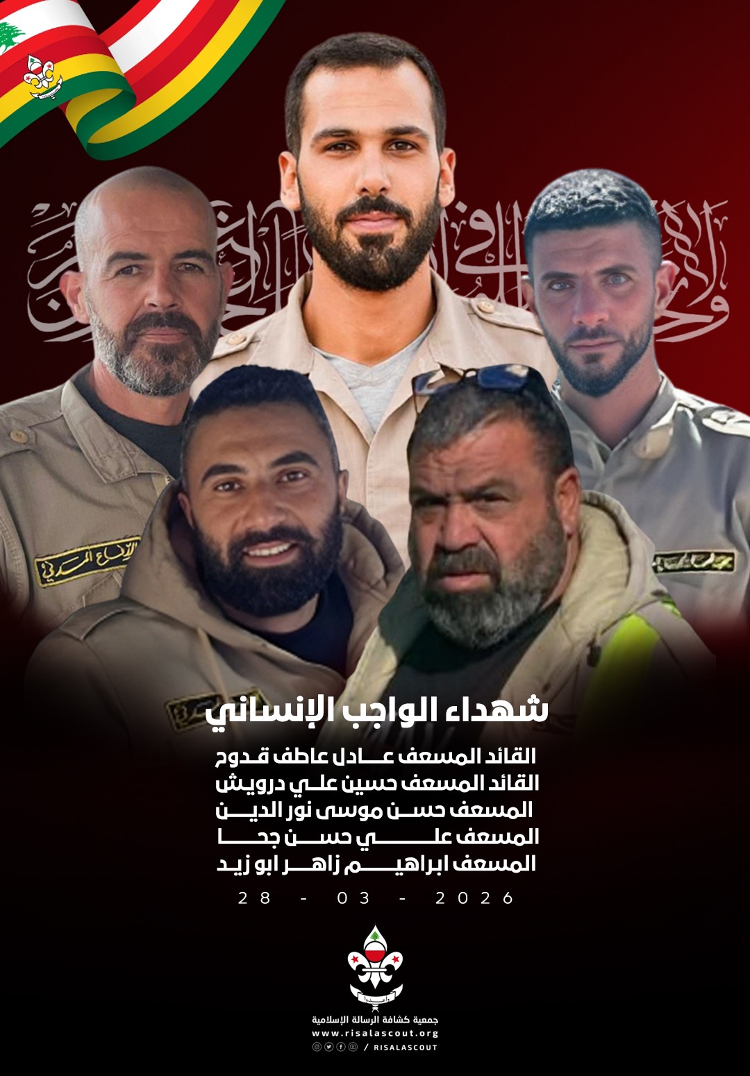 الأسبوع الماضي، نعت قيادة الجيش – مديرية التوجيه المجنّد (مدّدت خدماته) عمر ناظم العبد الذي استشهد بتاريخ 17 /3 /2026 جرّاء غارة إسرائيلية معادية في منطقة قعقعية الجسر – النبطية، والمجندين (مدّدت خدماتهما) محمد المصطفى بلال المعدراني ومهدي أكرم قبيسي اللذين استشهدا بتاريخ 17 /3 /2026 جرّاء غارة إسرائيلية معادية على طريق زبدين – النبطية.