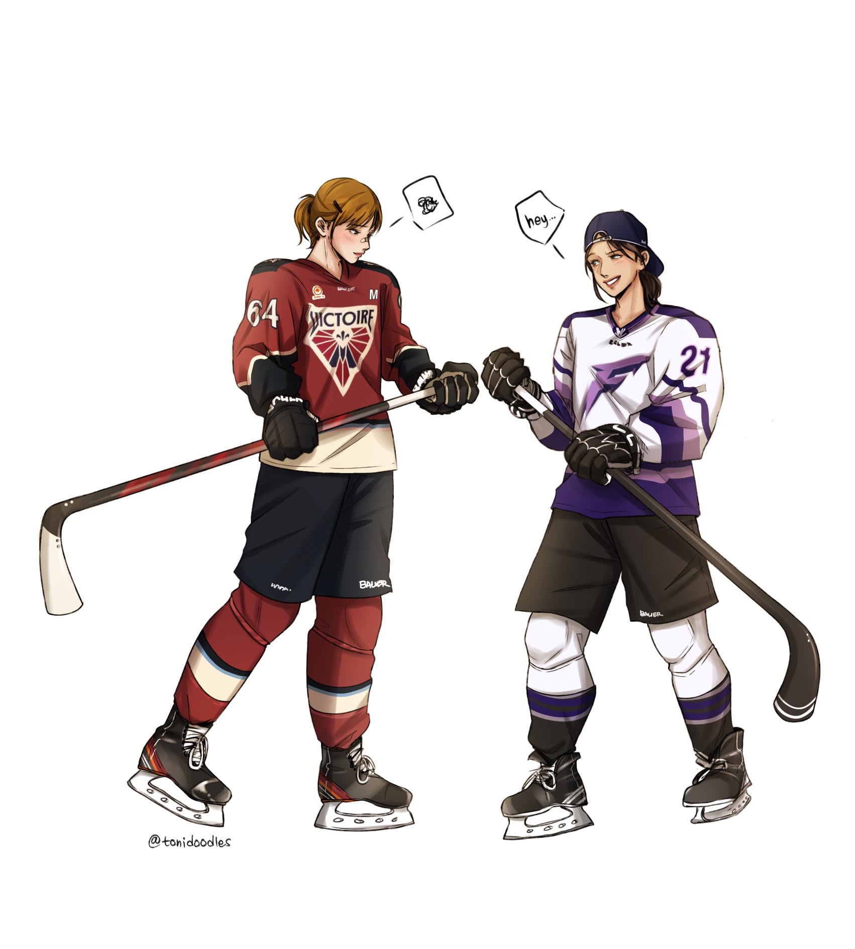 سعيدة للغاية بفوز فيكتوار اليوم، وكان علي فقط أن أضع موهيو في قمصان الهوكي…