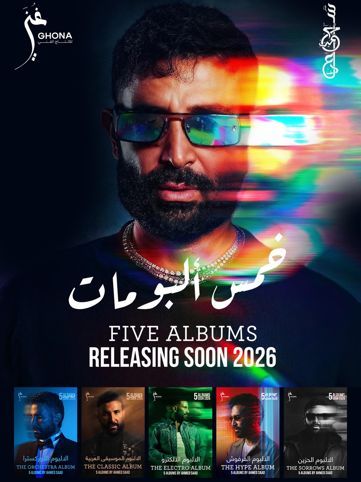 وأعلن أحمد سعد رسميًا عن طرح خمسة ألبومات غنائية كاملة خلال عام ٢٠٢٦، في خطوة فنية جريئة تعكس نشاطه الكبير وتنوّع موهبته، على أن تلبي هذه الألبومات مختلف الأذواق الموسيقية، وهي: