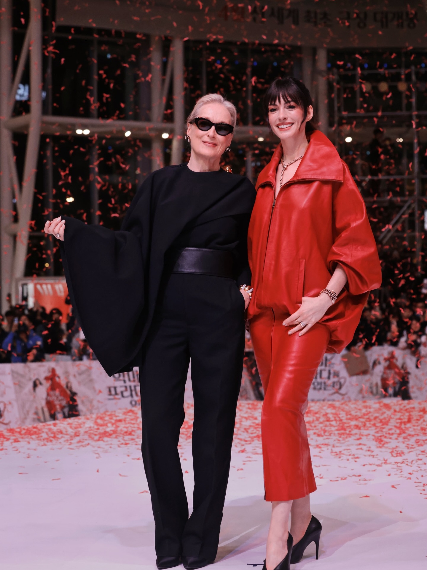 في سيول، تأنّقت ميريل ستريب في العرض الافتتاحي للفيلم، بتصميم مبتكر من “سيلين” (Céline)، نسّقته مع نظّارة وكندرة باللون الأسود.