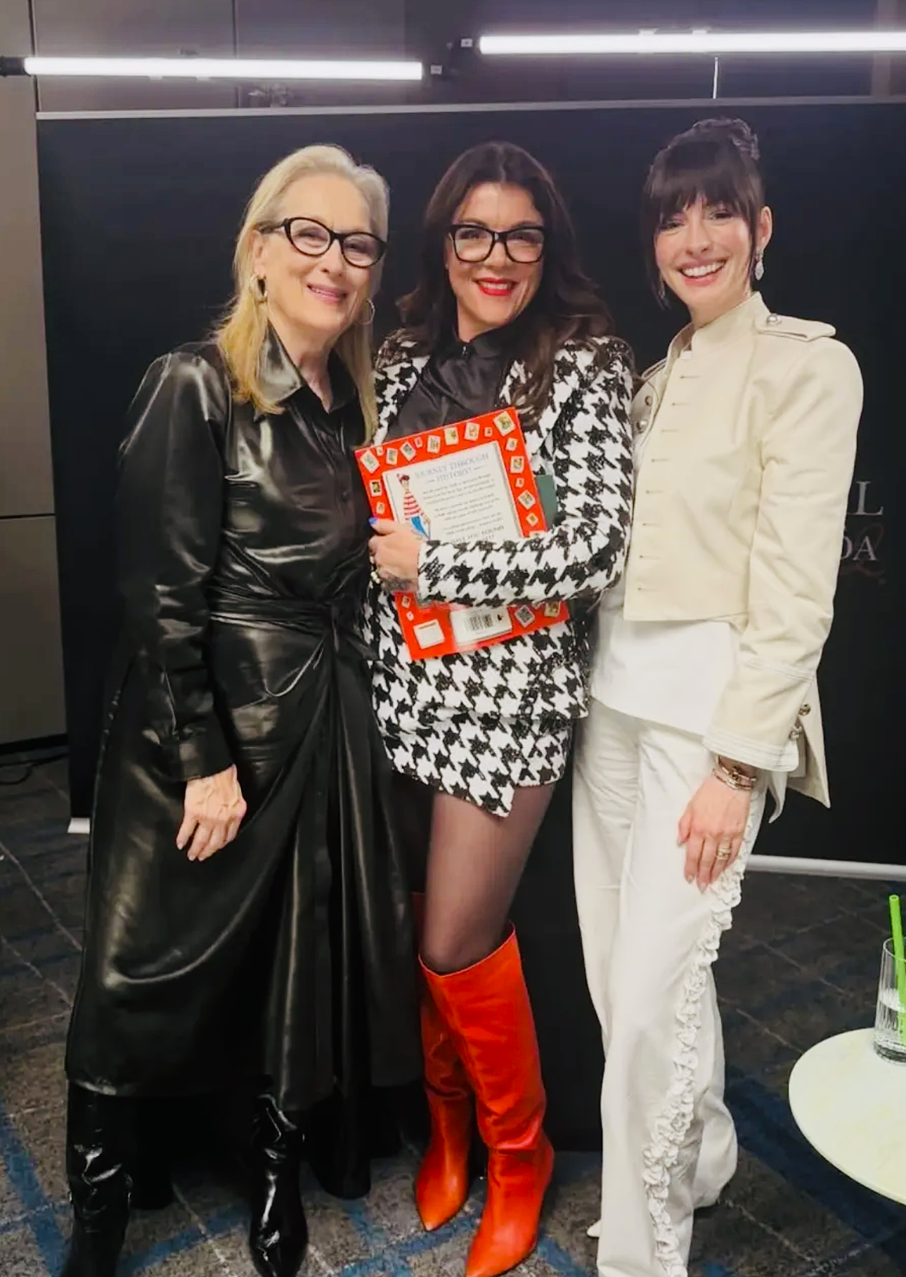في أحد المؤتمرات الصحفيّة التي شاركت فيها حول فيلم (The Devil Wears Prada) في سيول، ارتدت ميريل ستريب معطفاً من الجلد الأسود مع جزمة طويلة سوداء.