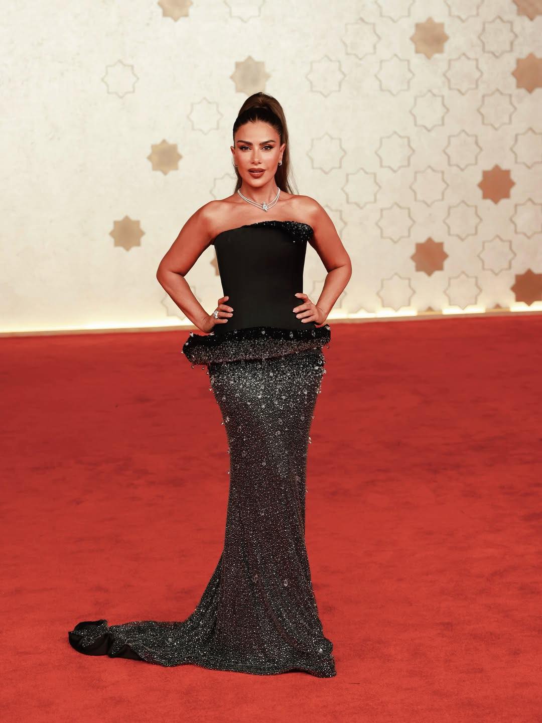 ختام الإبداع كان مع الثوب الأسود البراق من سوفي كوتور. بصدر مفتوح وتصميم يعانق الجسد، وبتنسيق مع مجوهرات كارتييه الفاخرة وشعر مرفوع للأعلى، بدت صبا وكأنها نجمة من العصر الذهبي للسينما، تضج بريقاً وثقة.