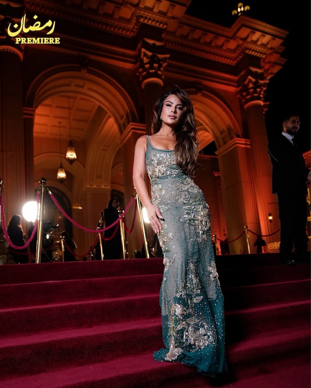 في حفل إطلاق مسلسلات الشركة المتحدة لرمضان، اختارت صبا أن تكون عنواناً للنمو والتجدد بفستان أخضر من جورج حبيقة. الثوب جاء موشى بالكامل بعروق خضراء دقيقة، وكأنها قطعة مستوحاة من الغابات الساحرة، مع قصة “البروتول” التي أضفت لمسة ملوكية، وتوجت الإطلالة بشعر منسدل بتموجات ناعمة تتماشى مع انسيابية التصميم.