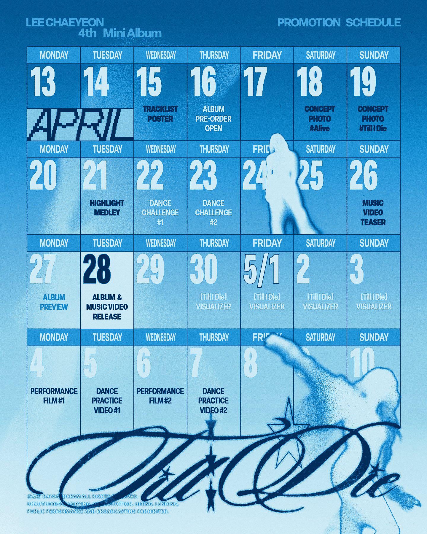 Lee Chaeyeon – الألبوم المصغر الرابع: Till I Die (جدول الترويج)