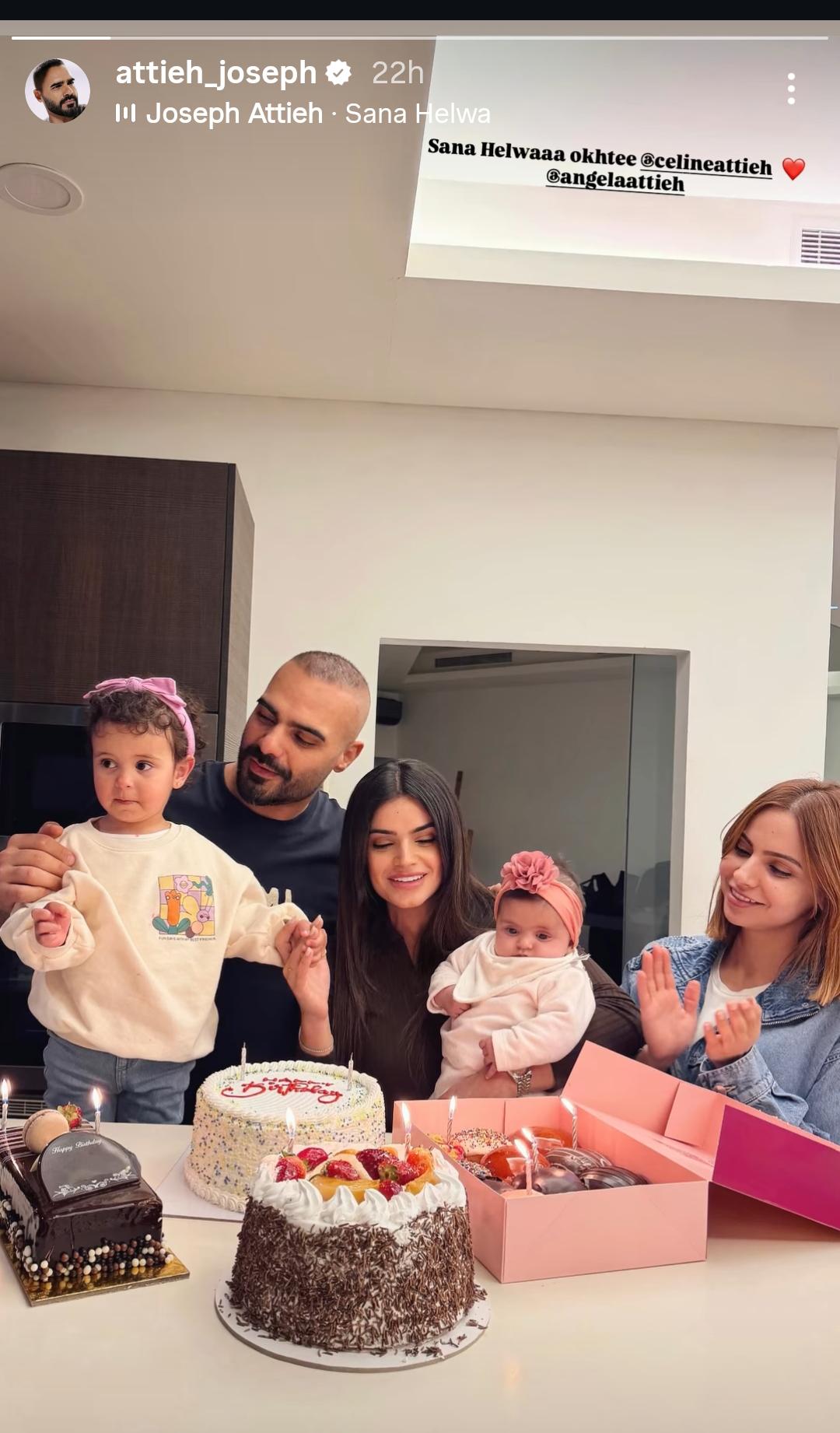 وبهذه المناسبة، نشر جوزيف صورة عبر خاصية “القصص القصيرة”، ظهر فيها وسط عائلته الصغيرة، حيث حضرت شقيقته الأخرى أنجيلا اضافة الى عدد من الأقارب