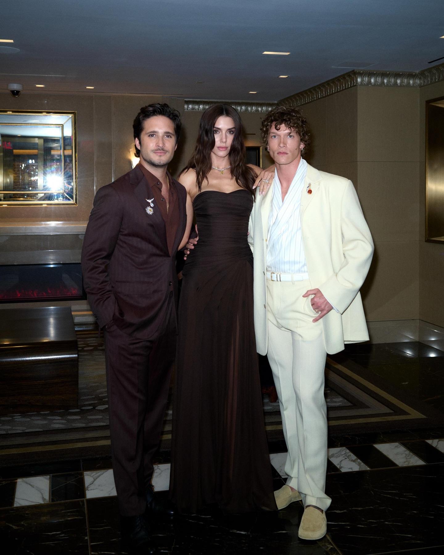 أما عارضة الأزياء والممثّلة الأرجنتينيّة فالنتينا فيرير، فاختارت لغة مختلفة عبر التألّق بفستان بنيّ داكن من الشيفون، حمل توقيع المصمّم اللبناني-العالمي زهير مراد، وجسّد الأناقة الكلاسيكية بلمسة حسيّة معاصرة.