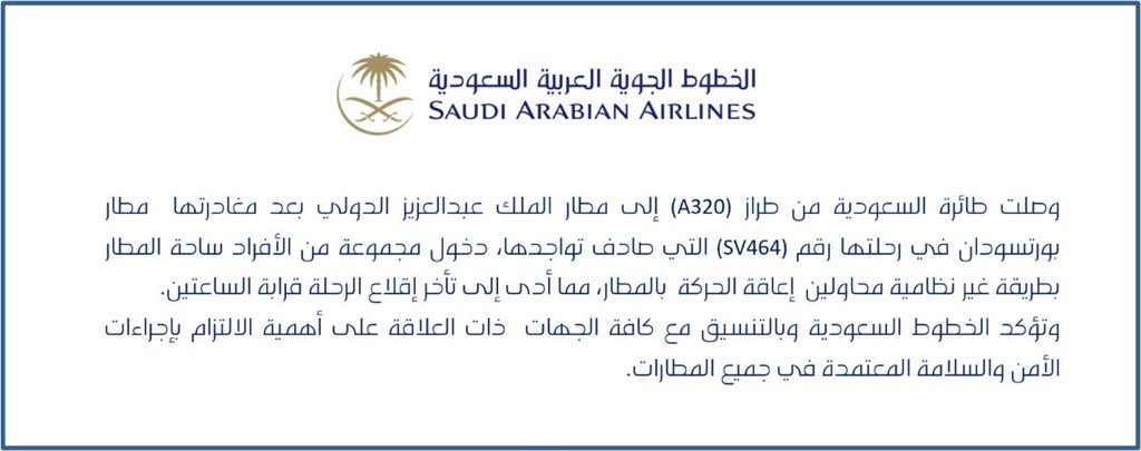 ويعود تاريخ المقطع إلى مايو 2019، حيث كشفت الخطوط الجوية العربية السعودية حينها ملابساته في بيان عبر حسابها على منصة “إكس”، أوضحت فيه أن طائرة من طراز (A320) وصلت إلى مطار الملك عبدالعزيز الدولي بعد مغادرتها مطار بورتسودان في الرحلة رقم (SV464)، مشيرة إلى أن مجموعة من الأفراد دخلوا ساحة المطار بطريقة غير نظامية في ذلك الوقت، محاولين إعاقة الحركة، ما أدى إلى تأخر إقلاع الرحلة لنحو ساعتين.