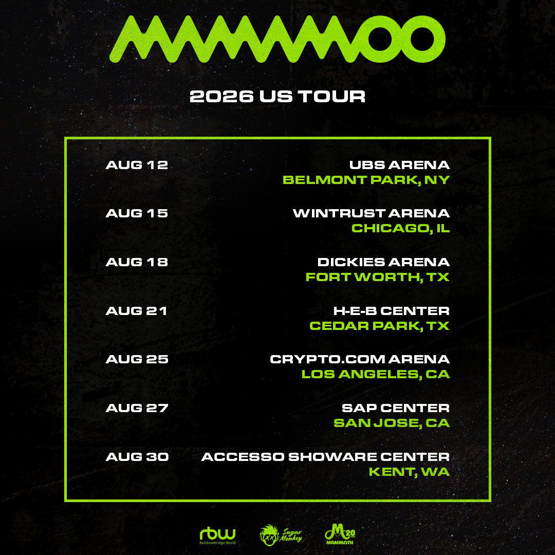الرئيسية»K-POP»MAMAMOO – جولة الولايات المتحدة لعام 2026 (ملصق التواريخ والأماكن)