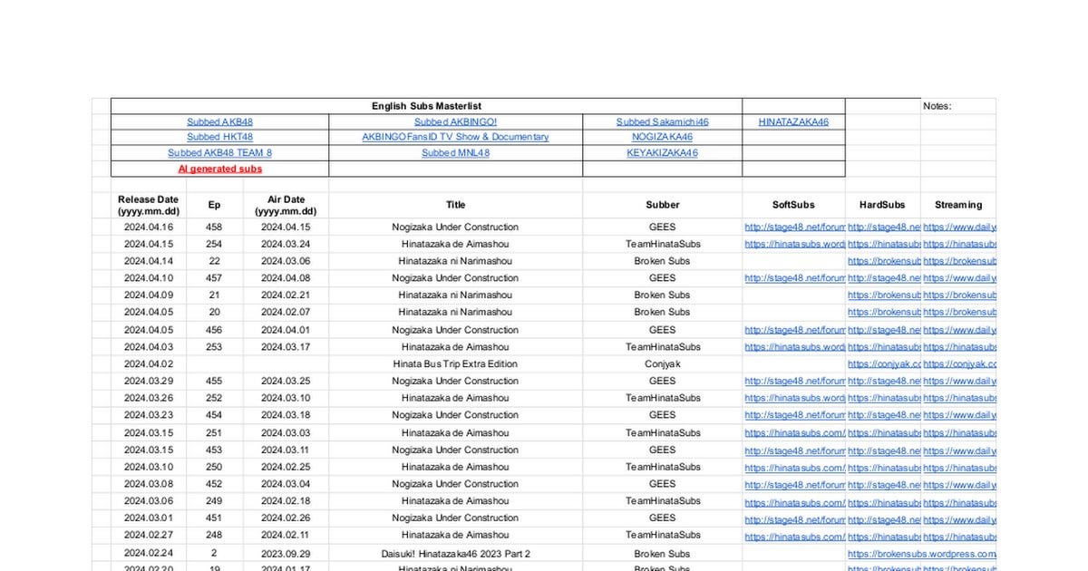 - أنا أبحث عن قائمة رئيسية لـ LE SSERAFIM (قائمة AKB48 الرئيسية كمرجع https://docs.google.com/spreadsheets/d/1B1HFVF5iQBgvjDrPnmwfbq0Iz6VvaOmDep0C2x8yoMo/edit?pli=1#gid=1178117571). هل يوجد شيء مثل هذا؟