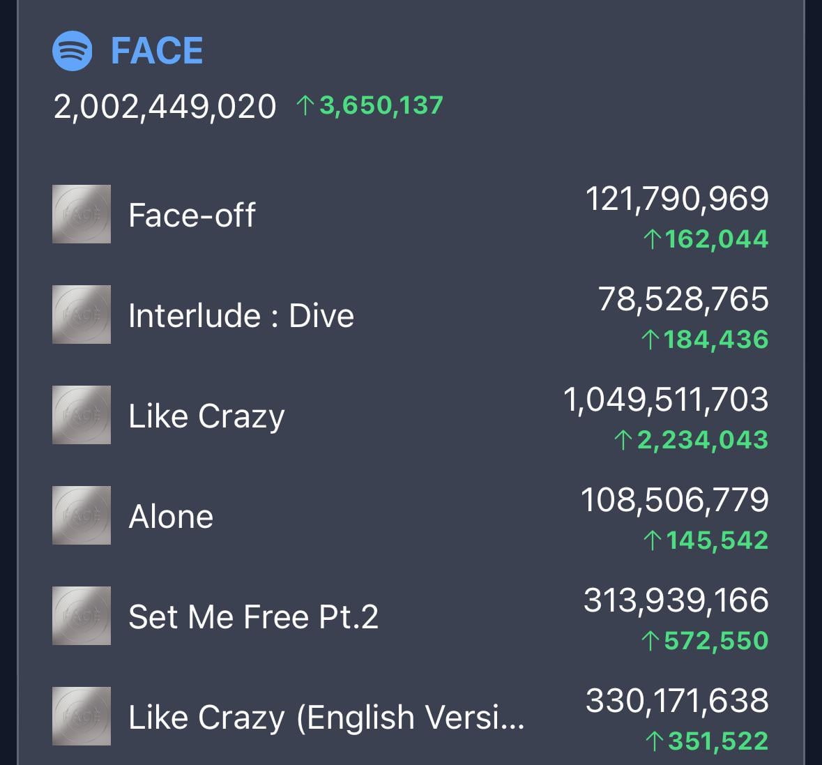 [BTS] 240425 أغنية “FACE” لجيمين تجاوزت 2 مليار استماع على سبوتيفاي!