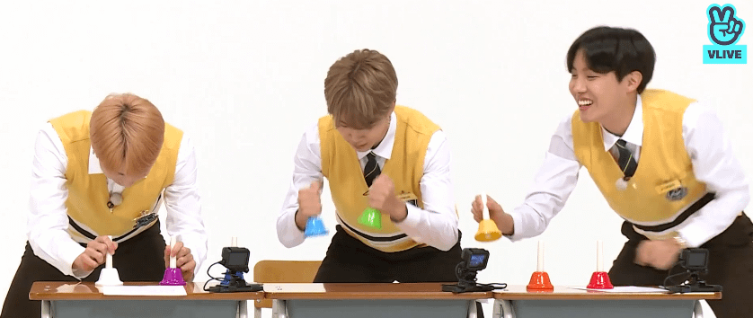 ملخص: تشغيل BTS: تستمر جلسة الجرس: سوف تسمع هذه الأجراس لفترة وجيزة. SUGA يفرض قاعدة الفصل: ليس هناك استسلام! لا يمكنك الهروب إلا بالموت على ما يبدو، وهو ما قد يحدث لهوبي إذا سألت جيمين 😀 اللعبة التالية هي في الواقع وقت الغداء: يلعبون بشكل فردي وإذا خمنوا الطعام الموجود في الصورة – فسيحصلون على هذا الطعام. الفصل الأخير في هذه الحلقة هو PE Relay.